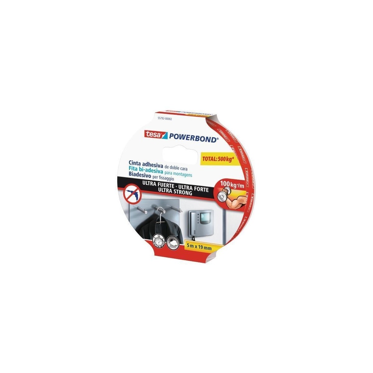 TESA Powerbond Ultra Strong. Colore del prodotto: Bianco, Lunghezza: 5 m, Capacità di tenuta: 1 Kg/cm. Larghezza: 19 mm