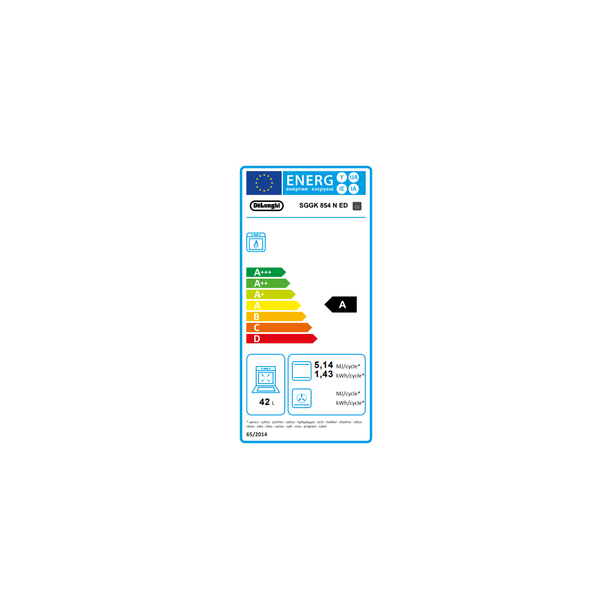 De'Longhi SGGK854 N ED - Cucina a Gas, 4 Fuochi, 86 cm, Forno a Gas, 42 Litri, Grill Elettrico, Classe A