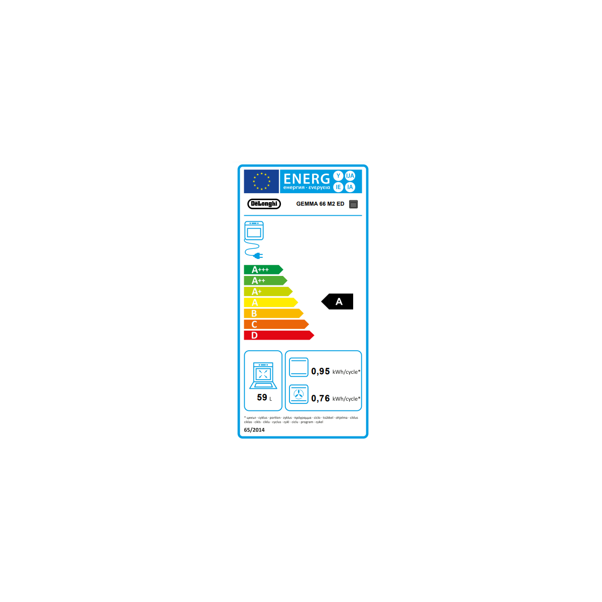 | Consumo energetico (convezione forzata) | 0,76 kWh |