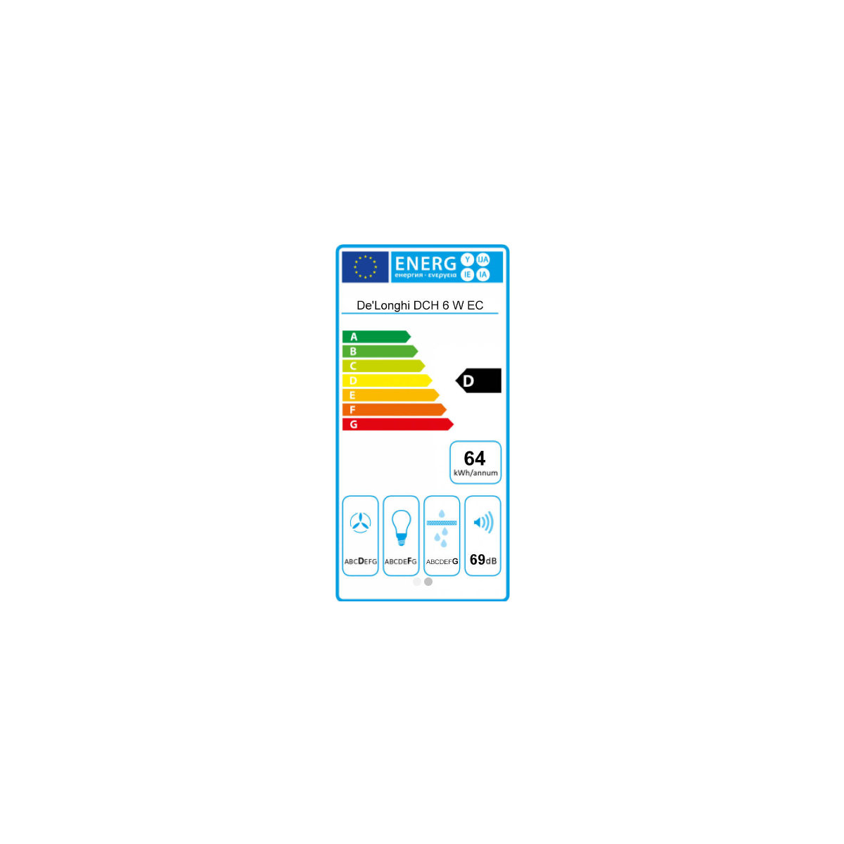 De'Longhi DCH 6 W EC - Cappa Aspirante Sottopensile, 295 m³/h, Bianca, 60 cm, Classe D