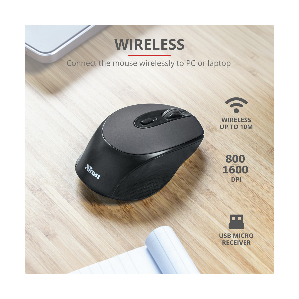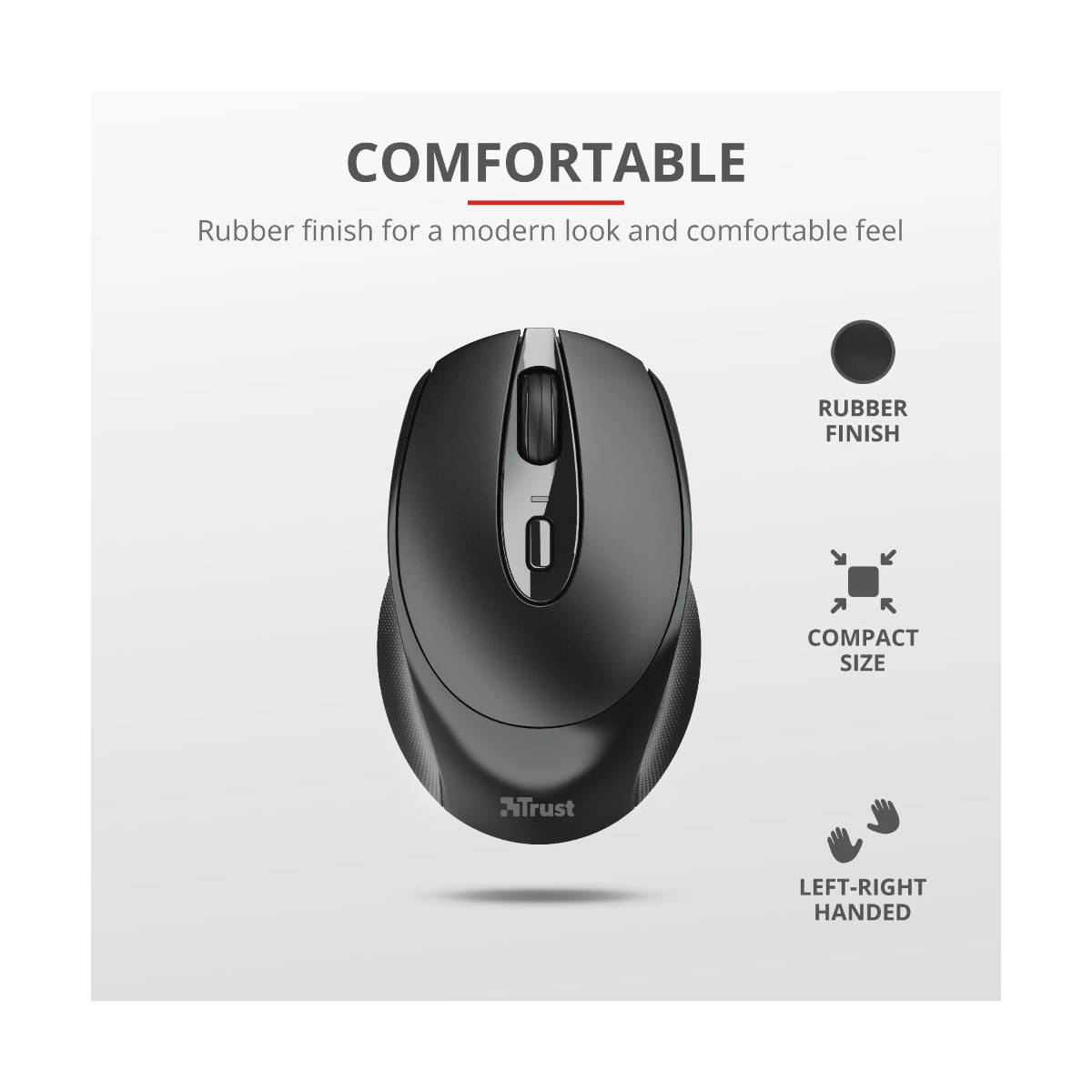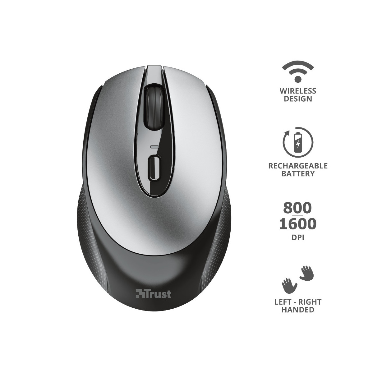 Il mouse wireless ricaricabile Trust Zaya è uno strumento pratico che ti semplifica la giornata lavorativa. È provvisto di quattro pulsanti, incluso un pratico commutatore DPI per regolare la velocità del cursore, un microricevitore USB che puoi facilmente riporre nello stesso mouse e batteria ricaricabile. Non dovrai mai più preoccuparti delle batterie.