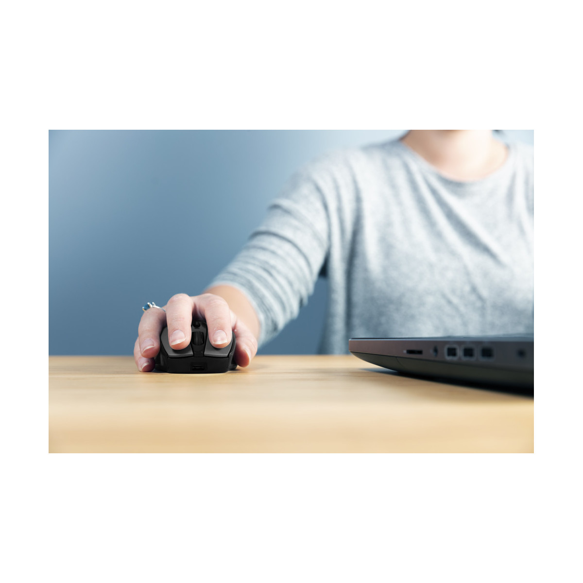 Grazie al design ambidestro simmetrico, il mouse Zaya può essere usato sia con la mano destra che con la sinistra. Inoltre, è compatibile con qualsiasi dispositivo moderno. Basta collegare il ricevitore USB a una porta USB libera del laptop, PC, Mac o Chromebook; non devi fare altro.