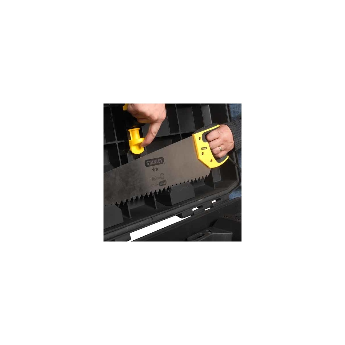 Cassetta Vasca STANLEY con ruote in polietilene ad alta densita', con serratura di sicurezza (fornita con 2 chiavi). Capacita' di carico Kg.50. Volume: 113 litri. Guarnizione tra vasca e coperchio, per proteggere il contenuto da pioggia e umidita'. Ruote ad uso intenso. Vaschetta. All'interno, possibilita' di agganciare livella e segaccio al coperchio, e dotazione di alloggiamenti verticali e sportabili per utensili. Coperchio scanalato per il taglio di tubi. Maniglione in metallo estraibile per il traino. Maniglia posteriore per sollevamento della vasca ( 2 persone ). 1-94-850.