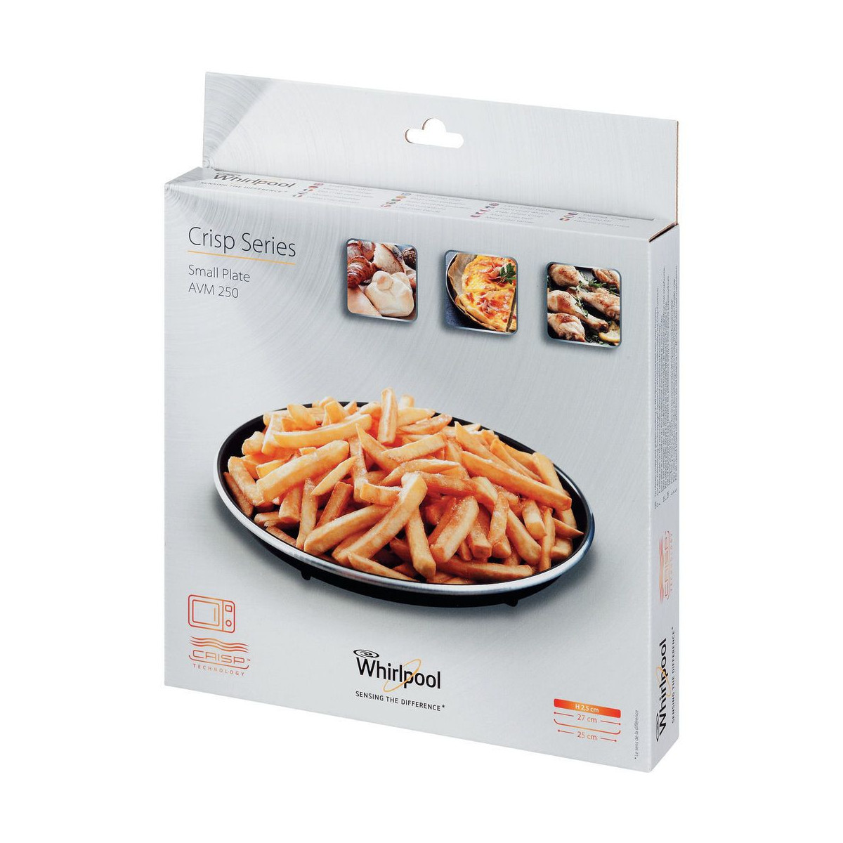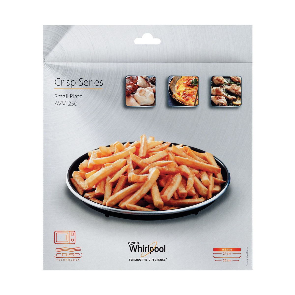 Whirlpool AVM250. Tipo di prodotto: Piatto, Colore del prodotto: Nero, Materiale della scocca: Metallo. Larghezza: 270 mm, Profondità: 270 mm, Altezza: 25 mm. Numero di prodotti inclusi: 1 pezzo(i)