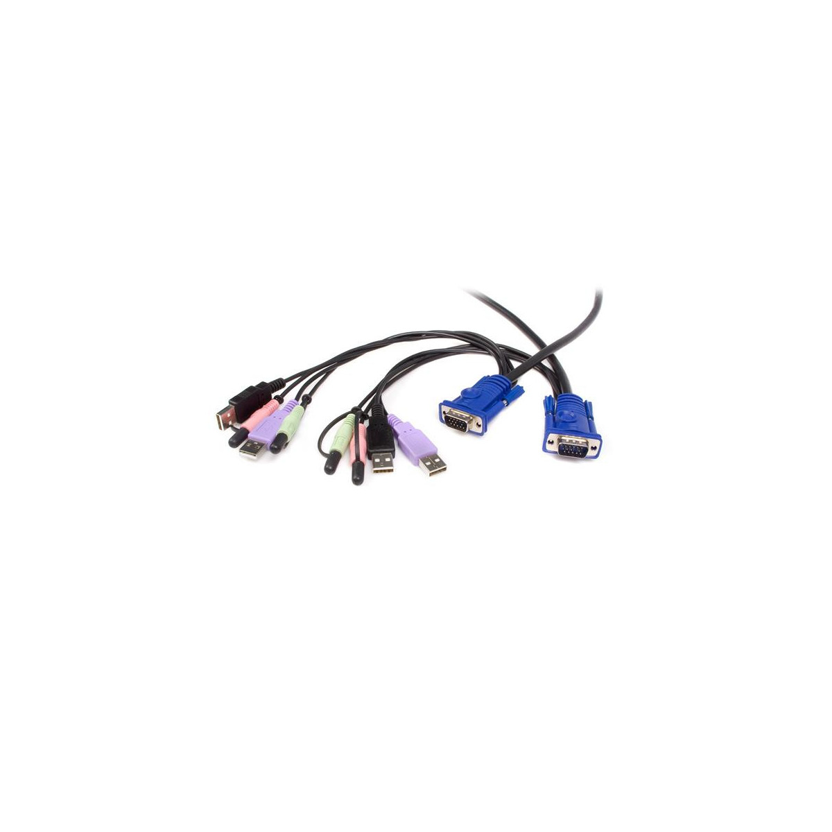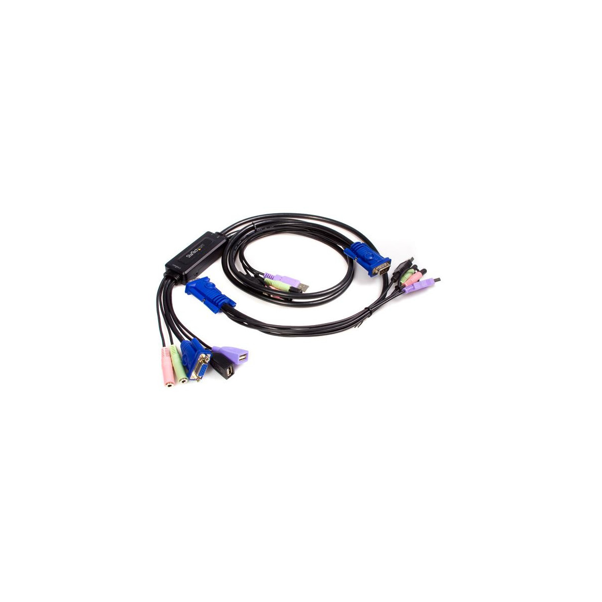 Il cavo switch KVM USB VGA con audio 2 porte SV215MICUSBA offre una soluzione ad alta risoluzione (fino a 2048 x 1536) per l'accesso e il controllo di due computer desktop da un singolo set di periferiche KVM (Keyboard, Video, Mouse).