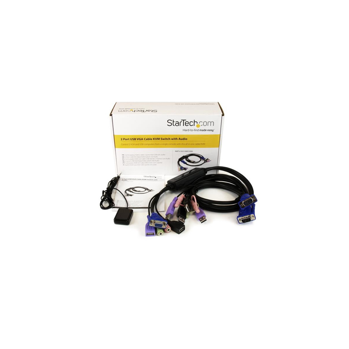 StarTech.com Switch KVM cavo VGA USB 2 porte con audio. Lunghezza cavo: 0,81 m, Tipo di porte tastiera: USB, Tipo porta mouse: USB. Peso: 400 g, Larghezza imballo: 86 mm, Profondità imballo: 248 mm