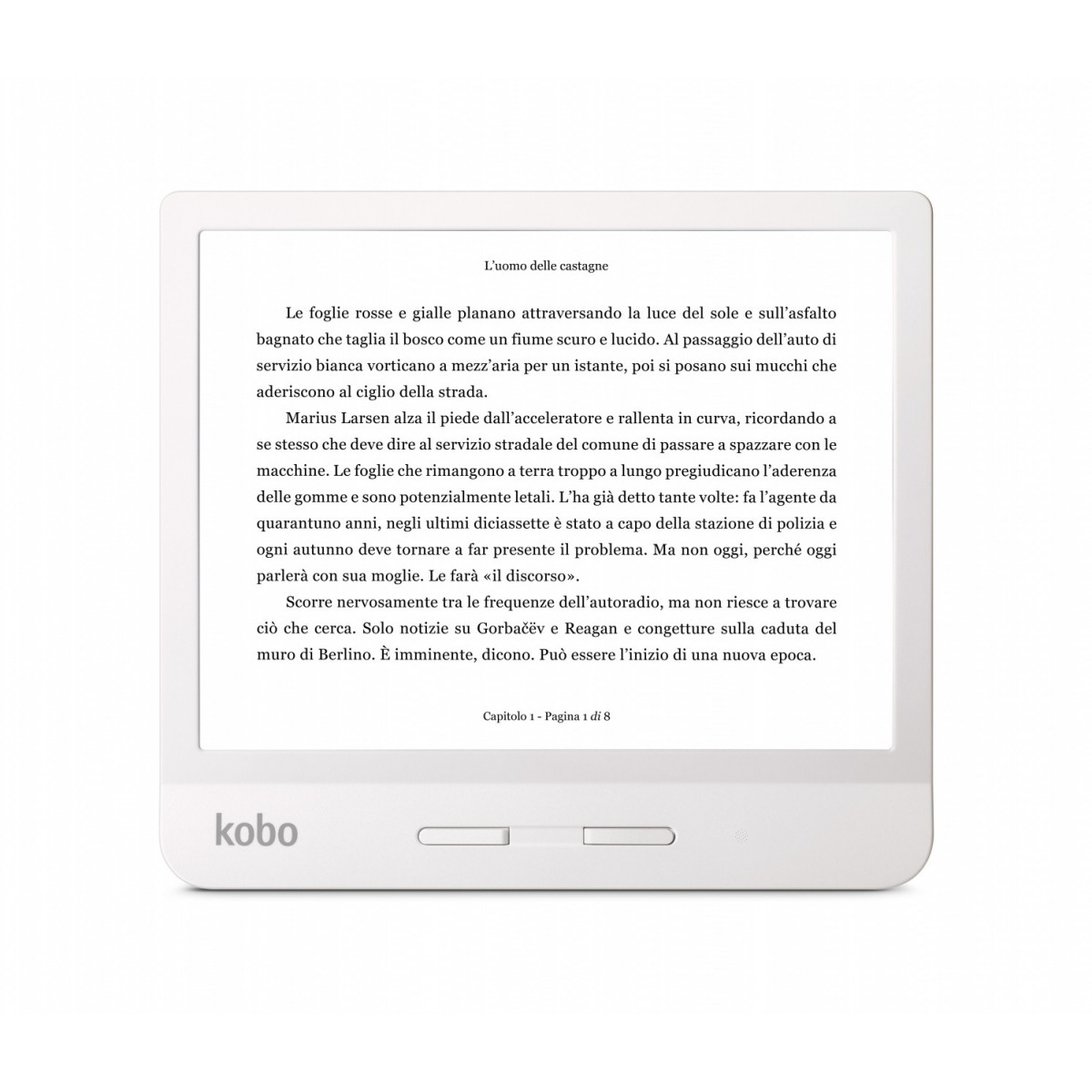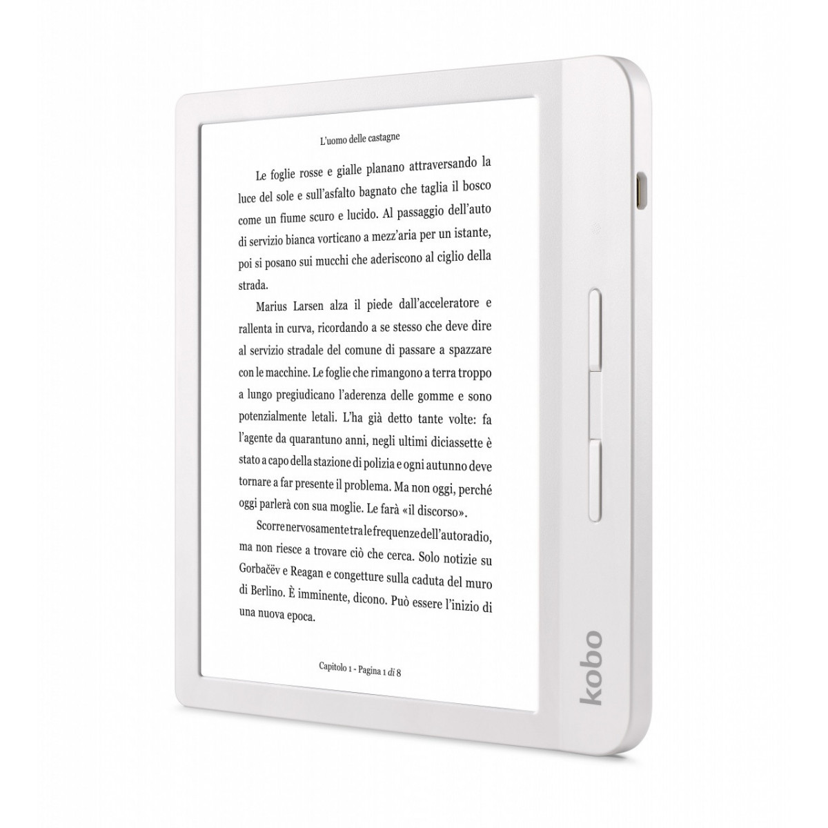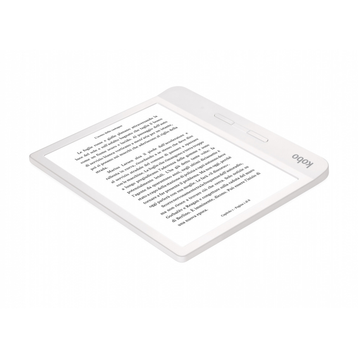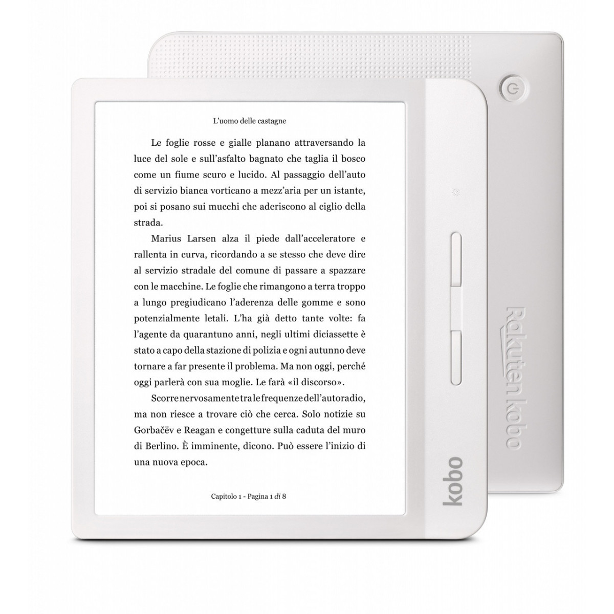 Rakuten Kobo Libra H2O. Dimensioni schermo: 17,8 cm (7"), Tecnologia: E Ink Carta, Risoluzione del display: 1680 x 1264 Pixel. Capacità memoria interna: 8 GB, Capacità RAM: 512 MB. Connettore USB: Micro-USB. Colore del prodotto: Bianco. Tipologia alimentazione: Batteria