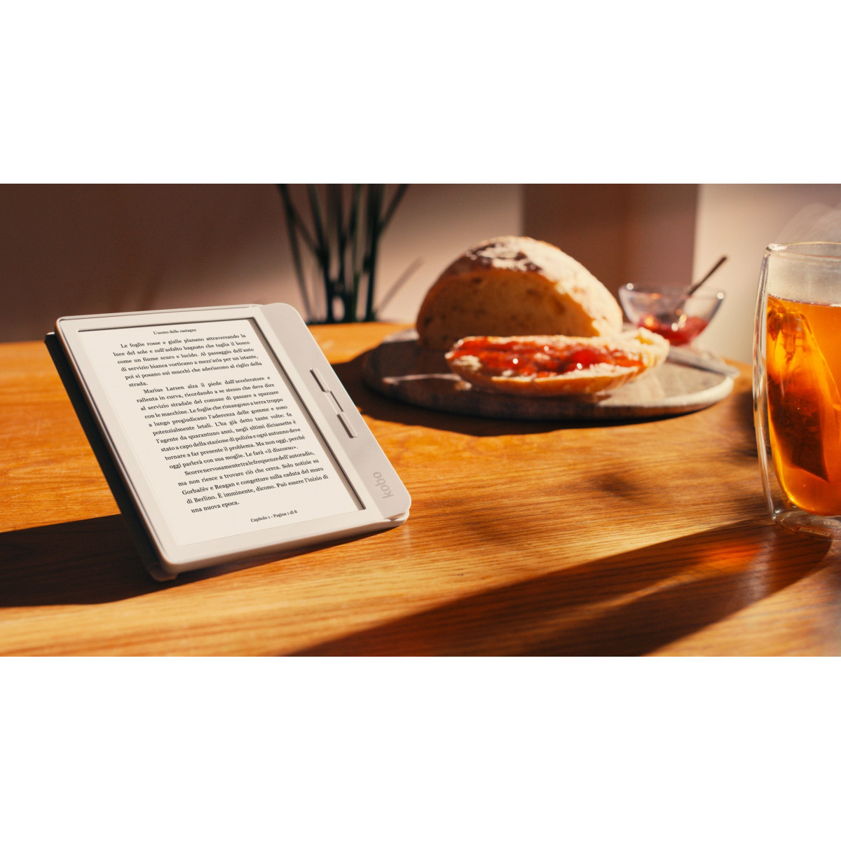 Il perfetto equilibrio tra un’innovativa tecnologia digitale, un’esperienza di lettura confortevole e un design moderno. Disponibile nei colori nero e bianco, e abbinabile ad accessori di quattro colori diversi, Kobo Libra H2O ti permette di scegliere il modello più adatto a te. Leggi senza stancarti grazie al confortevole design ergonomico, all’opzione di orientamento orizzontale e ai pratici pulsanti per voltare pagina. La funzione ComfortLight PRO e l’impermeabilità totale ti permettono di leggere di giorno e di notte, ovunque tu ti trovi. Con Kobo Libra H2O leggere è tutta un’altra storia.