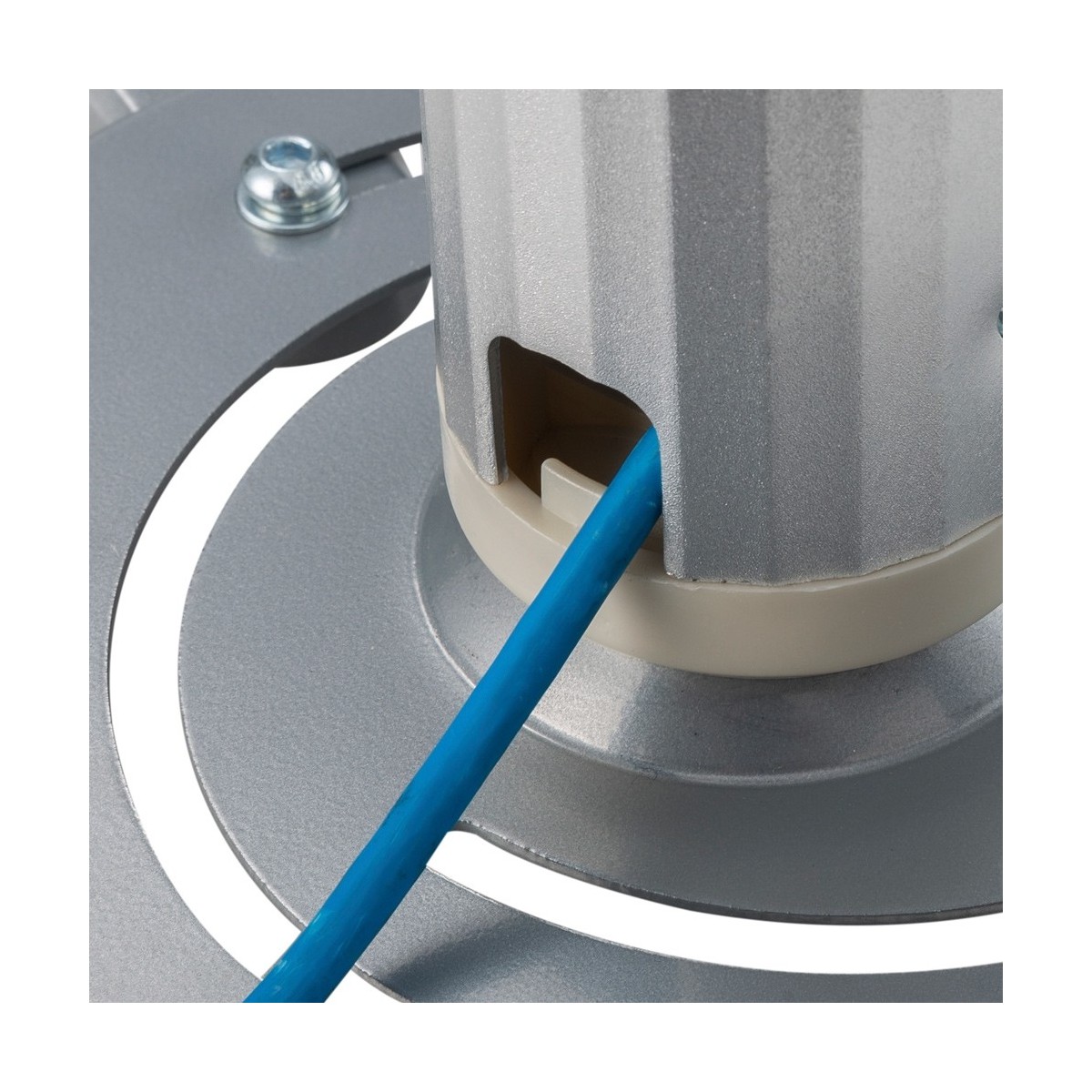 Il supporto è facilmente regolabile in altezza, consente inoltre l’inclinazione in senso verticale e la rotazione. Con questo supporto si può facilmente determinare la posizione ideale. I cavi sono tenuti fuori dalla vista attraverso la predisposizione di passaggio all’interno della colonna. Sul lato inferiore del proiettore trovate i fori di montaggio. Su questi fori si monta il supporto.