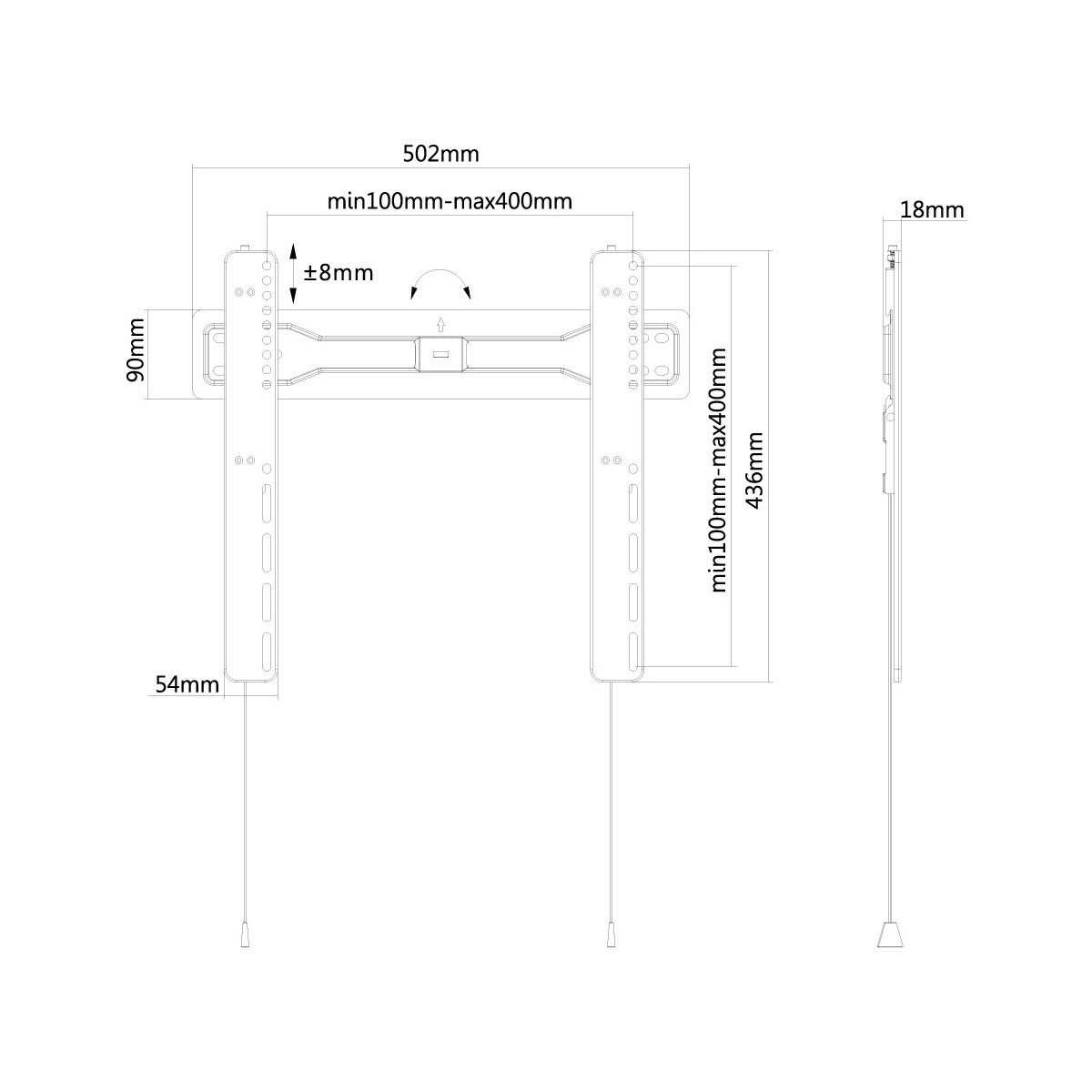 Questo supporto di soli 1,8 centimetri di profondità renderà la vostra TV LED un tutt'uno con la parete creando un piacevole effetto quadro. Il LED-W400BLACK, adatto a schermi fino a 55” con capacità massima di trasporto di 35 kg può essere montato su schermi con fori VESA fino a 400x400.