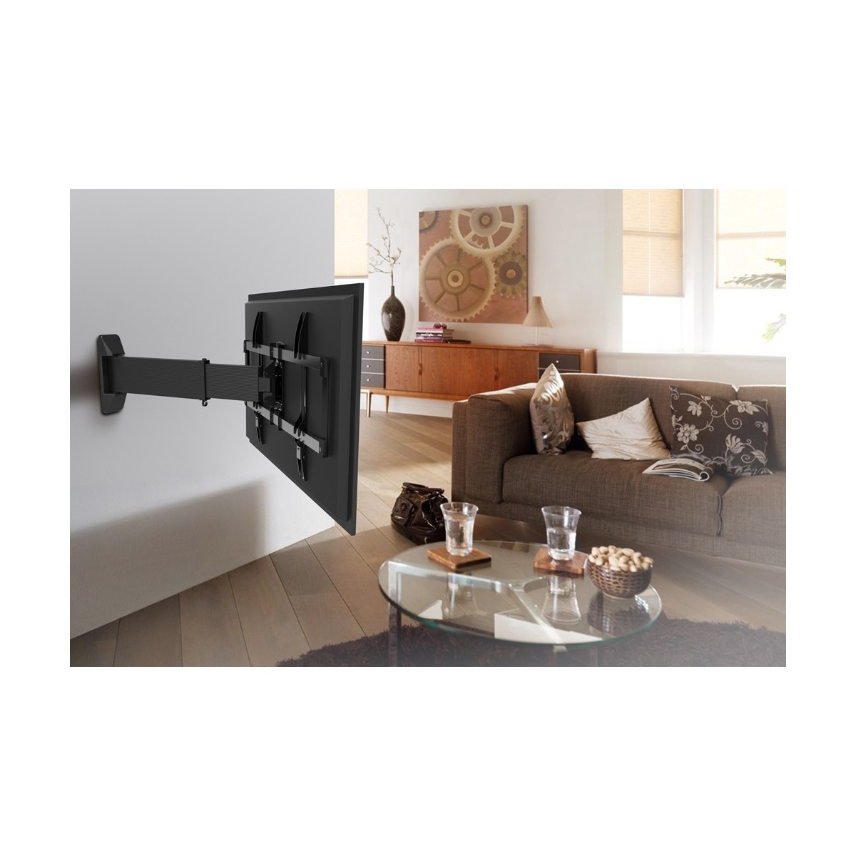 Il montaggio a parete è facile da regolare in profondità. È inoltre possibile inclinare lo schermo in senso verticale e orizzontale. Questo crea l'angolo di visione ideale. I cavi possono essere collocati sul lato inferiore del braccio.