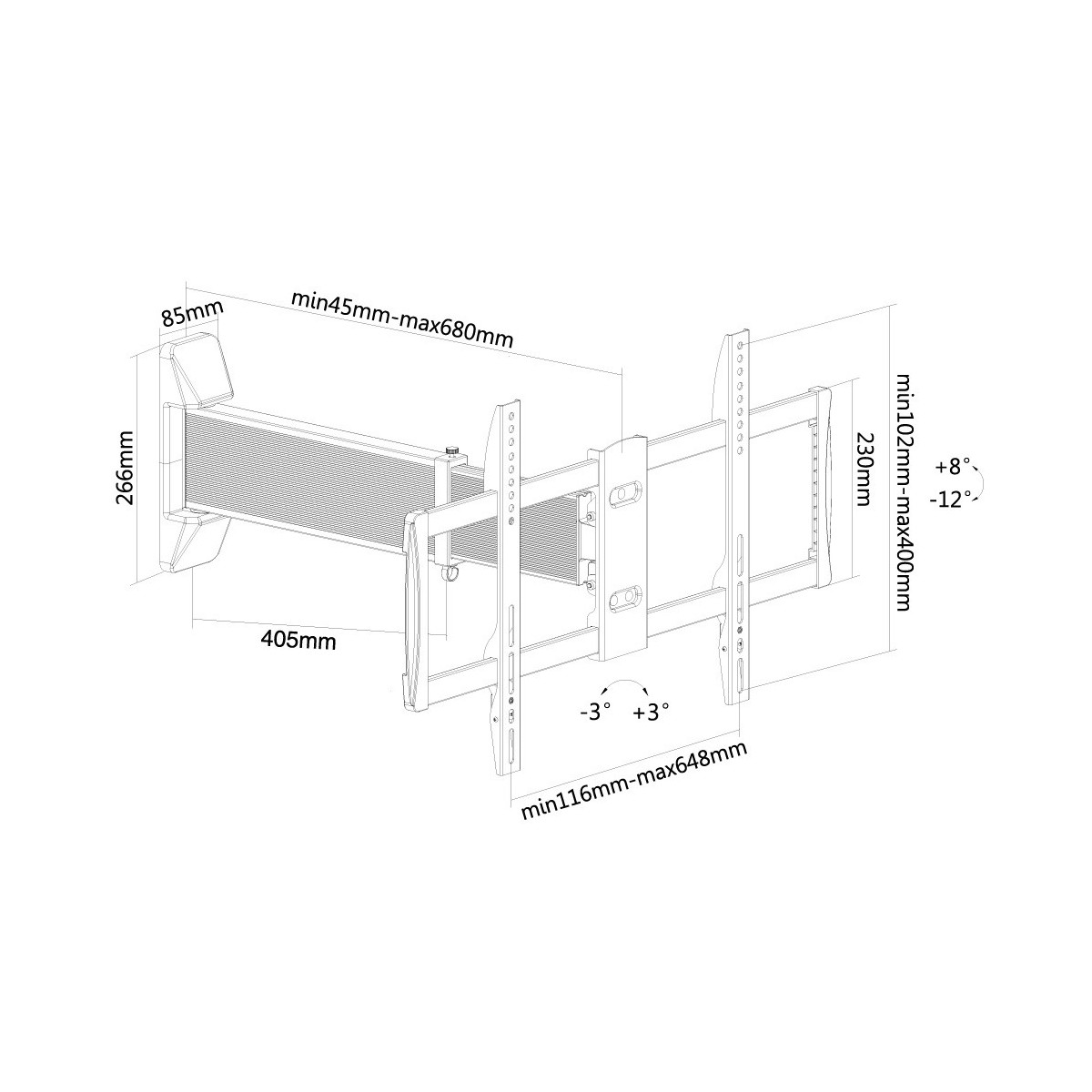 Il LED-W800BLACK ha 2 punti di articolazione ed è adatto a schermi fino a 70" (178 cm) con una capacità massima di trasporto di 40 kg. Questo prodotto è adatto per schermi con fori VESA da 200x200 fino a 600x400 mm.