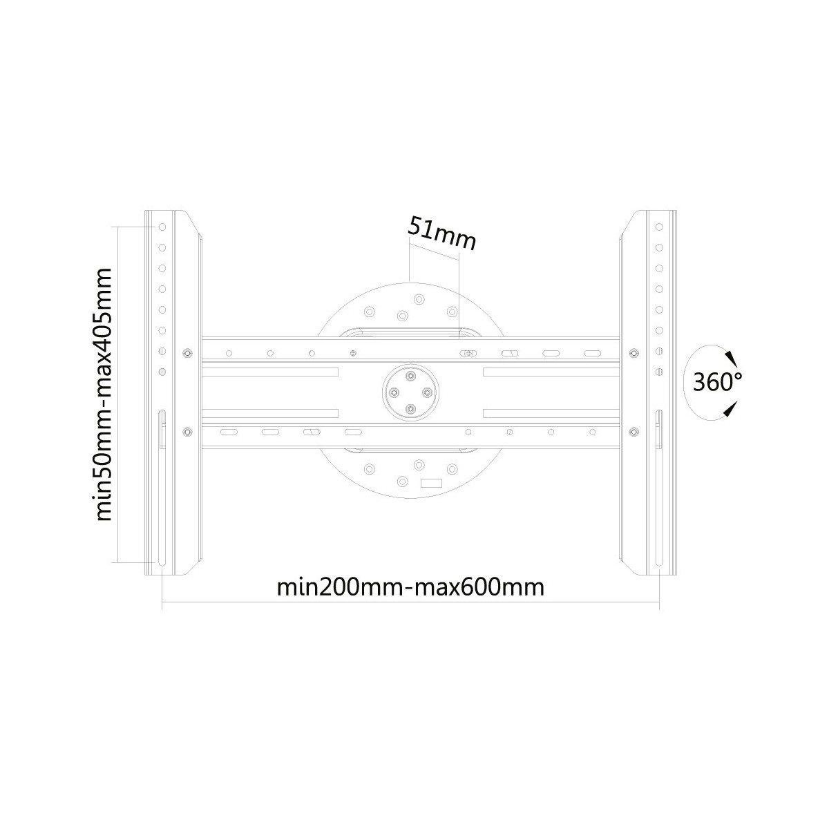 Newstar Supporto a parete per TV. Peso massimo (capacità): 50 kg, Capienza minima dimensioni dello schermo: 94 cm (37"), Capienza massima dimensioni dello schermo: 190,5 cm (75"), Compatibilità interfaccia di montaggio (min): 200 x 200 mm, Compatibilità interfaccia di montaggio (max): 600 x 400 mm. Angolo di rotazione: 360°, Distanza dal muro (massima): 5 cm. Colore del prodotto: Nero