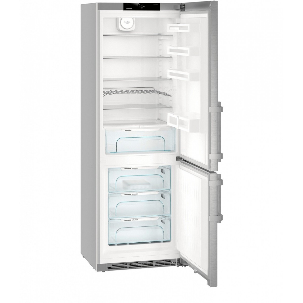 Liebherr CNef 5735. Capacità netta totale: 411 L. Cerniera porta: Destra, Tipo di display: TFT. Classe climatica: SN-T, Emissione acustica: 38 dB. Capacità netta frigorifero: 299 L, No Frost (frigorifero), Luce interna, Numero di ripiani frigorifero: 6. Capacità netta congelatore: 112 L, Capacità di congelamento: 16 kg/24h, No Frost (congelatore). Classe efficienza energetica: D (A+++), Consumo energetico annuo: 183 kWh. Colore del prodotto: Argento