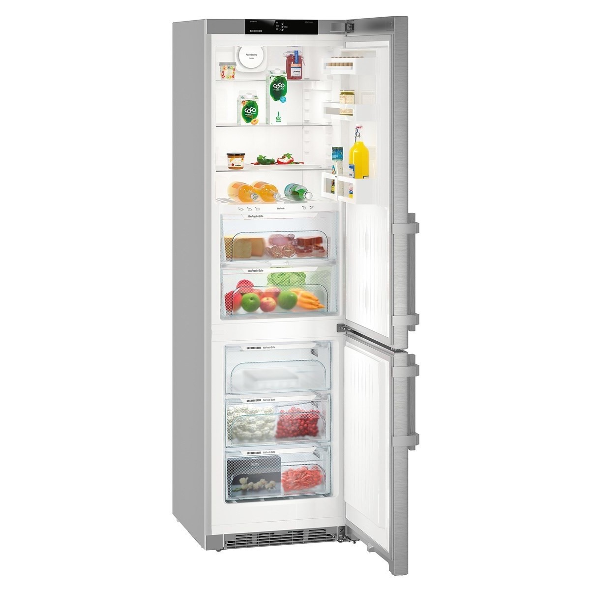 Liebherr CBNef 4835 Comfort BioFresh NoFrost. Capacità netta totale: 352 L. Cerniera porta: Destra, Tipo di display: TFT. Classe climatica: SN-T, Emissione acustica: 34 dB. Capacità netta frigorifero: 248 L, Luce interna, Numero di ripiani frigorifero: 4. Capacità netta congelatore: 104 L, Capacità di congelamento: 16 kg/24h, No Frost (congelatore). Compartimento zona fresca. Classe efficienza energetica: D (A+++), Consumo energetico annuo: 186 kWh. Colore del prodotto: Argento