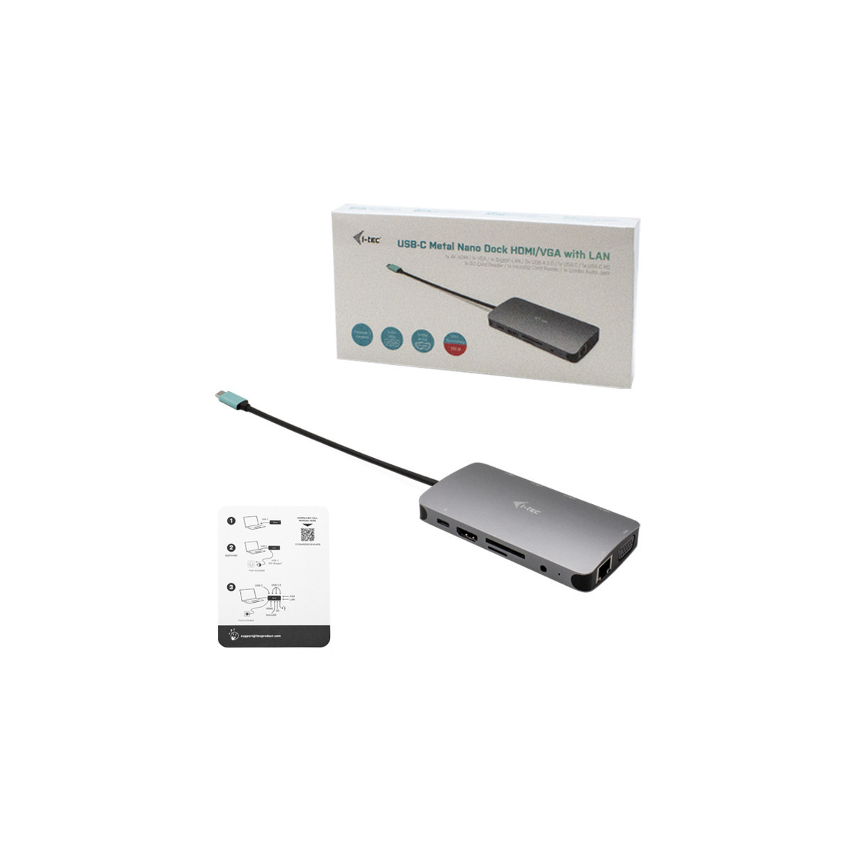 i-tec Metal USB-C Nano Dock HDMI/VGA with LAN + Power Delivery 100 W