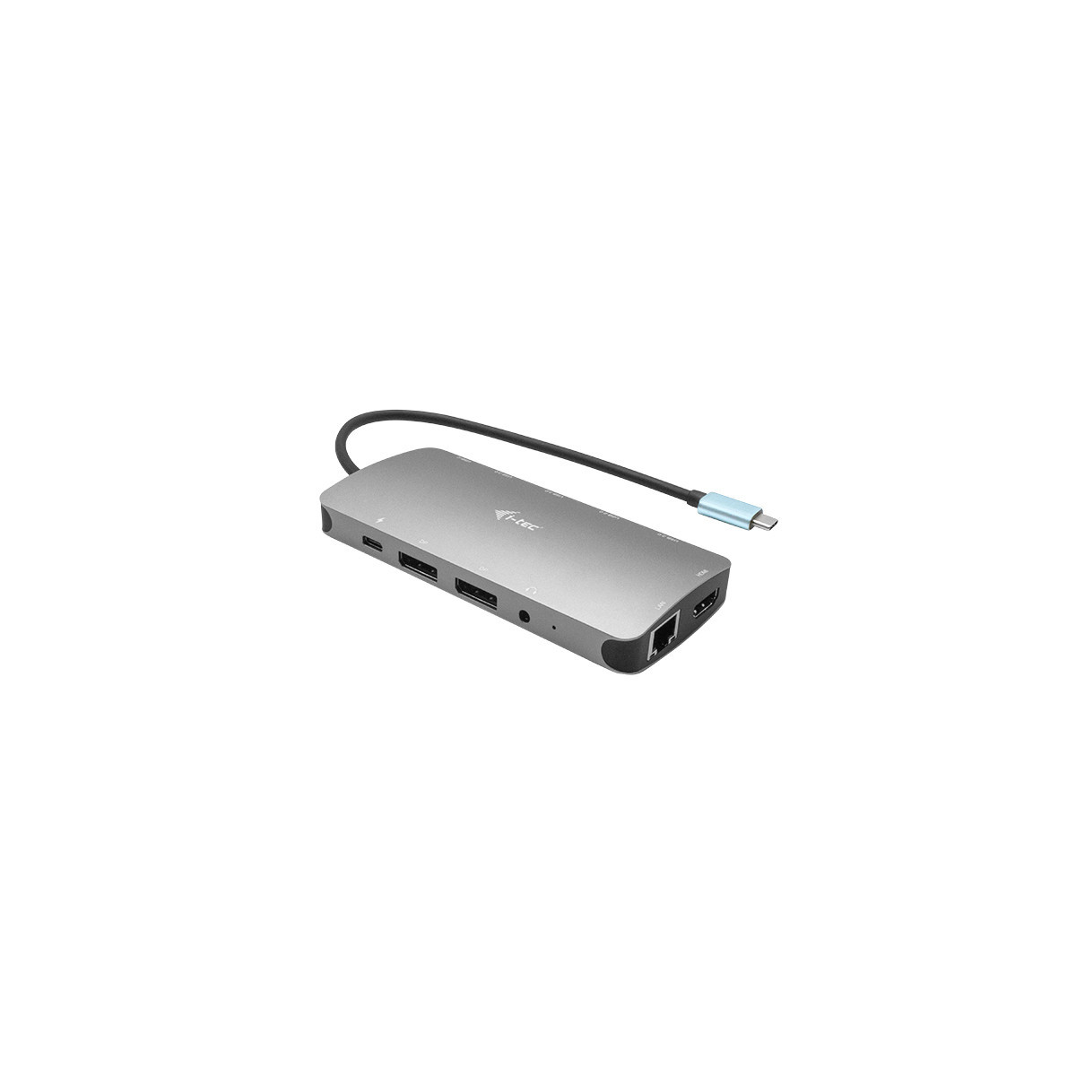 Una piccola docking station USB-C in metallo capace di collegare fino a tre monitor esterni*. Basta semplicemente collegare il vostro notebook o tablet (non è necessario installare i driver) e avrete una rapida trasmissione dati via USB, un collegamento a Internet attraverso la porta LAN con la possibilità di collegare le vostre cuffie e il microfono. Naturalmente il dispositivo supporta l’alimentazione del vostro notebook, fino a 100 W, questo significa che potrete caricare i vostri notebook e tablet che supportano l’alimentazione tramite USB-C (USB-C Power Delivery).