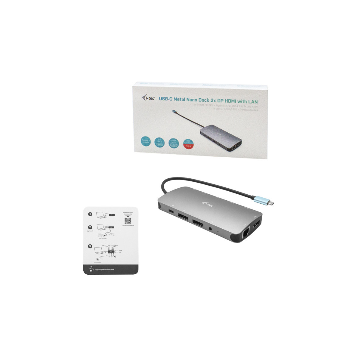 i-tec Metal USB-C Nano 3x Display Docking Station + Power Delivery 100 W. Tecnologia di connessione: Cablato, Interfaccia host: USB 3.2 Gen 1 (3.1 Gen 1) Type-C, Fornitura di alimentazione USB fino a: 100 W. Velocità trasferimento Ethernet LAN: 10,100,1000 Mbit/s. Colore del prodotto: Argento. Altri sistemi operativi supportati: Android, Cromo. Larghezza: 127 mm, Profondità: 60 mm, Altezza: 19 mm