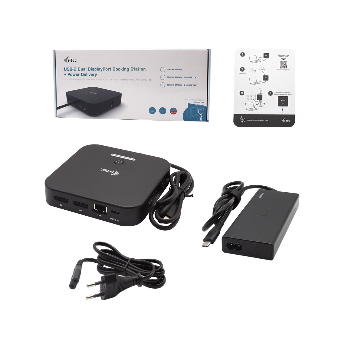 i-tec USB-C Dual Display Docking Station with Power Delivery 65W + Universal Charger 77 W