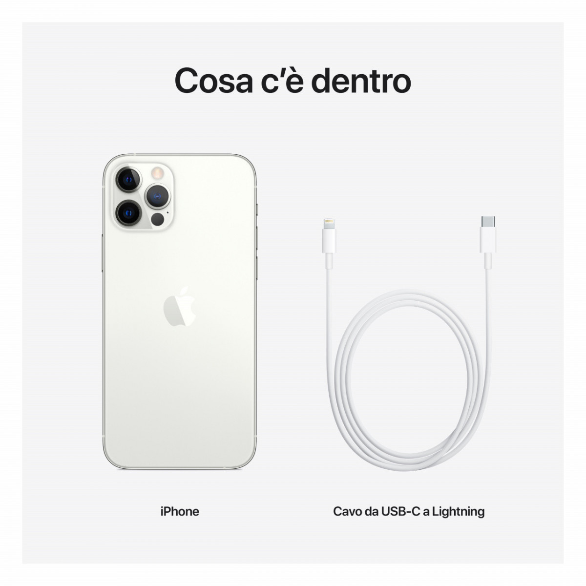 La confezione include iPhone e cavo da USB-C a Lightning. Puoi acquistare alimentatore e auricolari scegliendoli tra gli accessori proposti.