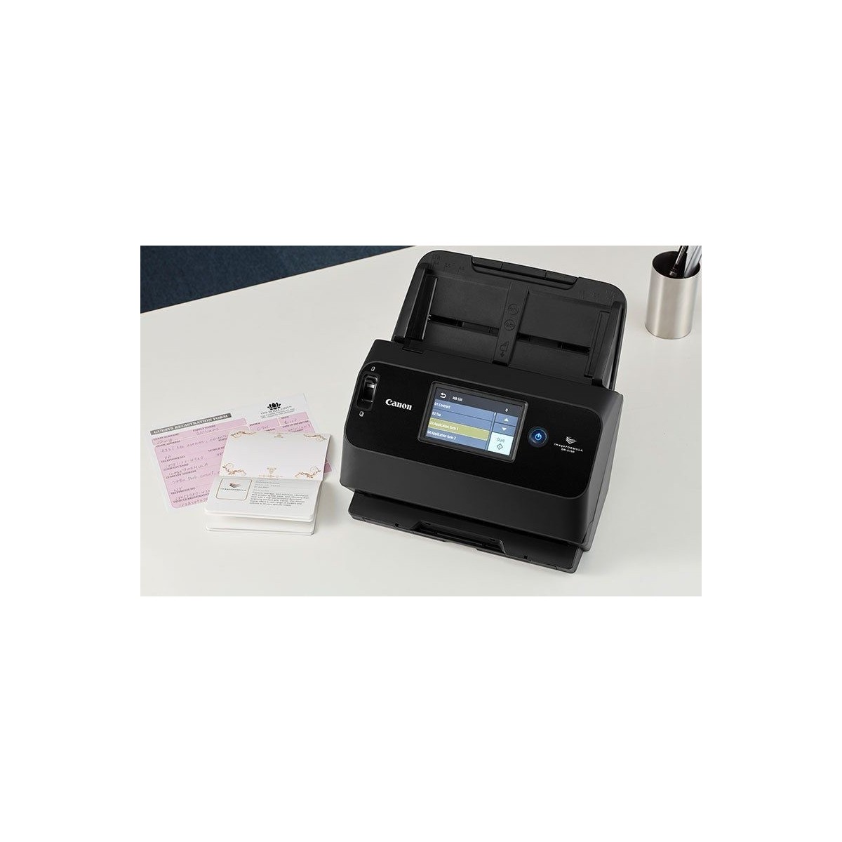 Canon imageFORMULA DR-S150. Massima dimensione di scansione: 216 x 356 mm, Risoluzione di scansione ottica: 600 x 600 DPI, Velocità di scansione ADF (n/b, A4): 45 ppm. Tipo di scansione: ADF + scanner ad alimentazione manuale, Colore del prodotto: Nero, Tipologia display: LCD. Tipo sensore: CMOS CIS, Ciclo di funzionamento quotidiano (max): 4000 pagine, Fonte di luce: LED RGB. Capacità documenti: 60 fogli. Massimo formato carta serie ISO A: A4, Scanning media types supported: Biglietto da visita, Scheda plastica, Ampiezza massima di scansione: 21,6 cm