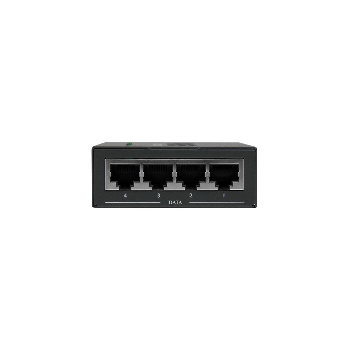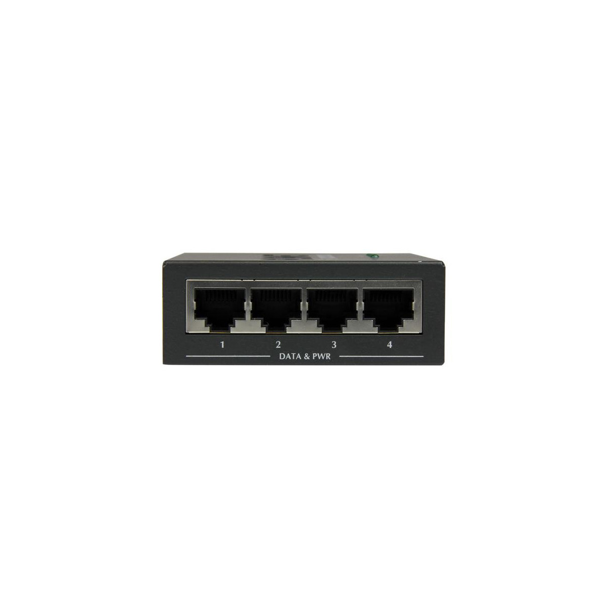 Questo hub midspan PoE+ montabile a parete consente di fornire alimentazione e dati a quattro dispositivi Power over Ethernet