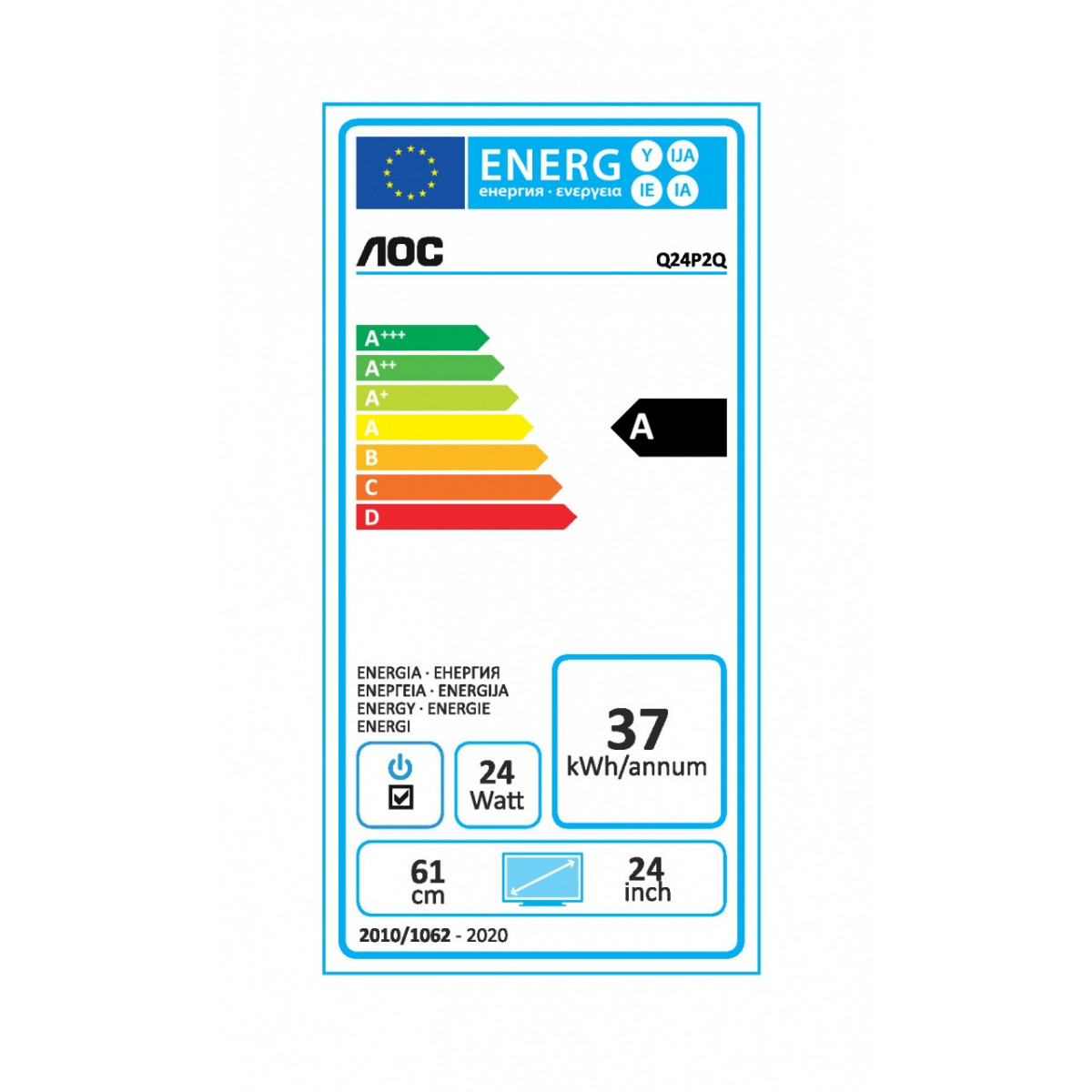 AOC Pro-line Q24P2Q. Dimensioni schermo: 60,5 cm (23.8"), Risoluzione del display: 2560 x 1440 Pixel, Tipologia HD: Quad HD, Tecnologia display: LED, Superficie display: Opaco, Tempo di risposta: 4 ms, Rapporto d'aspetto nativo: 16:9, Angolo di visualizzazione (orizzontale): 178°, Angolo di visualizzazione (verticale): 178°. Altoparlanti incorporati. Hub USB integrato, Versione dell'hub USB: 3.2 Gen 1 (3.1 Gen 1). Montaggio standard VESA, Regolazione altezza. Colore del prodotto: Nero
