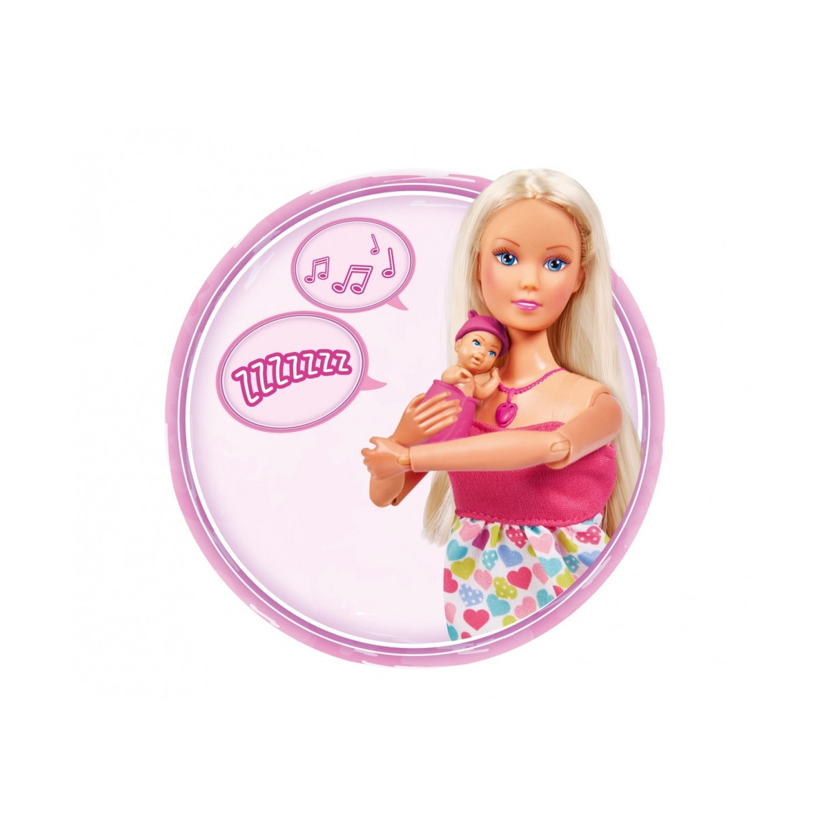 Simba Toys Steffi Love Real Mommy, l'unica vera mamma e il suo bebè!. Tipo di bambola: Bambola alla moda, Genere della bambola: Femmina, Età consigliata (min): 3 anno/i, Genere consigliato: Ragazza, Sonoro
