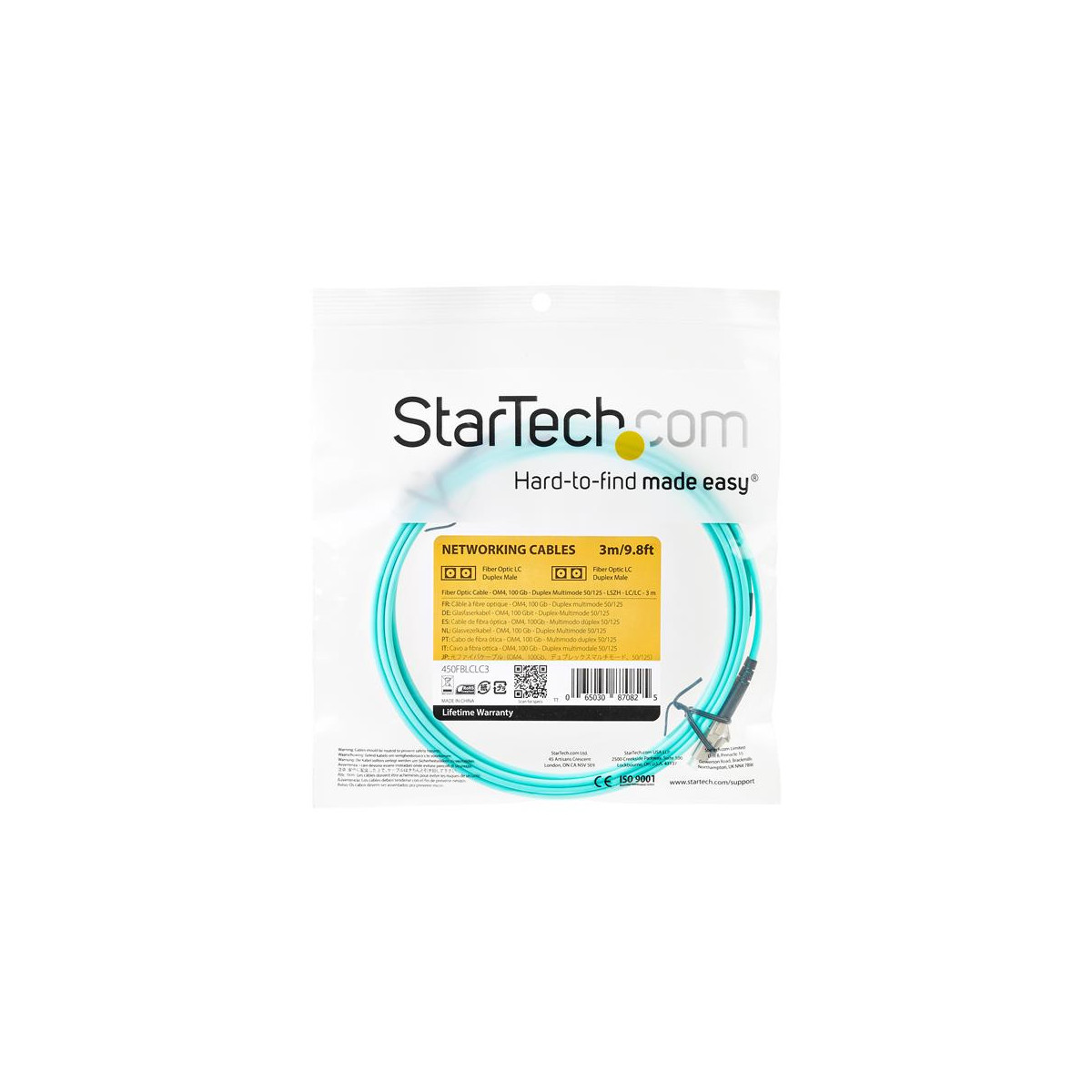 StarTech.com Cavo in Fibra Ottica Multimodale Duplex OM4 LC/LC - 100 Gb - 50/125 - LSZH - Turchese da 3m. Lunghezza cavo: 3 m, Tipo di fibra ottica: OM4, Connettore 1: LC, Connettore 2: LC, Diametro interno: 50 µm, Genere di connettore: Maschio/Maschio, Full duplex, Colore cavo: Blue,Aqua colour