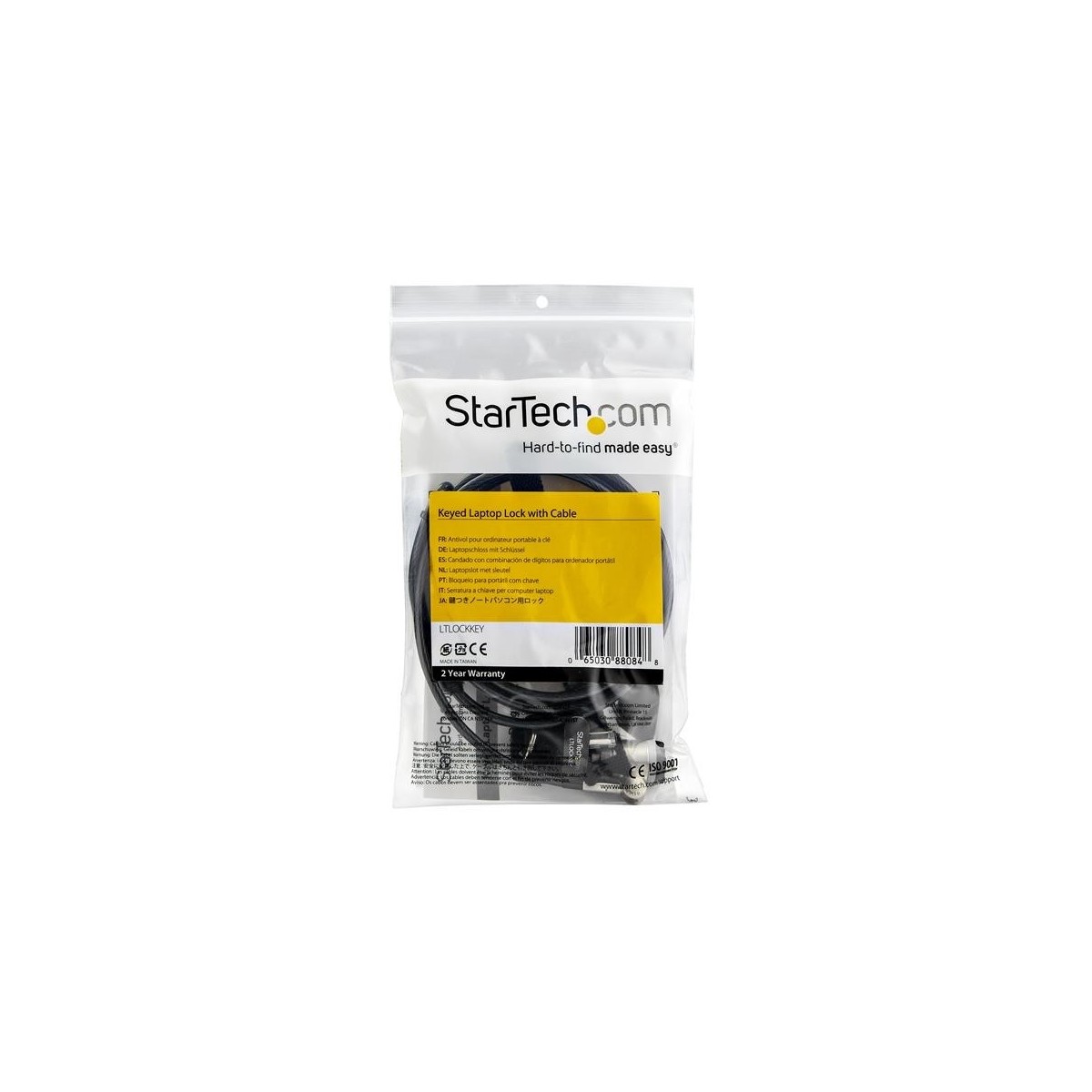 StarTech.com Cavo Lucchetto di Sicurezza con chiave per Laptop - Pulsante di Bloccaggio. Colore del prodotto: Nero, Argento, Utilizzo: Computer portatile, Tipo di serratura: 2 Chiavi. Lunghezza cavo: 2 m, Larghezza: 32 mm, Altezza: 17 mm. Quantità per pacco: 1 pezzo(i), Larghezza imballo: 4 mm, Profondità imballo: 130 mm