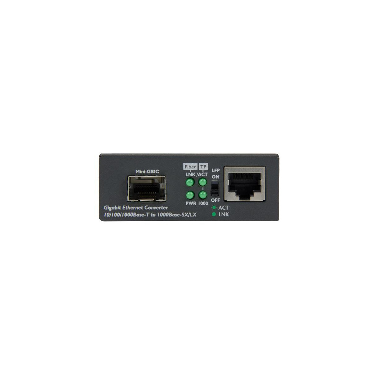 Il convertitore multimediale in fibra Gigabit offre un modo conveniente per collegare la rete Ethernet a dispositivi remoti tramite una dorsale in fibra. È dotato di uno slot SFP aperto che consente di scegliere l’SFP Gigabit conforme a MSA che meglio si adatta alla modalità di collegamento in fibra (monomodale/multimodale) e ai requisiti di distanza.