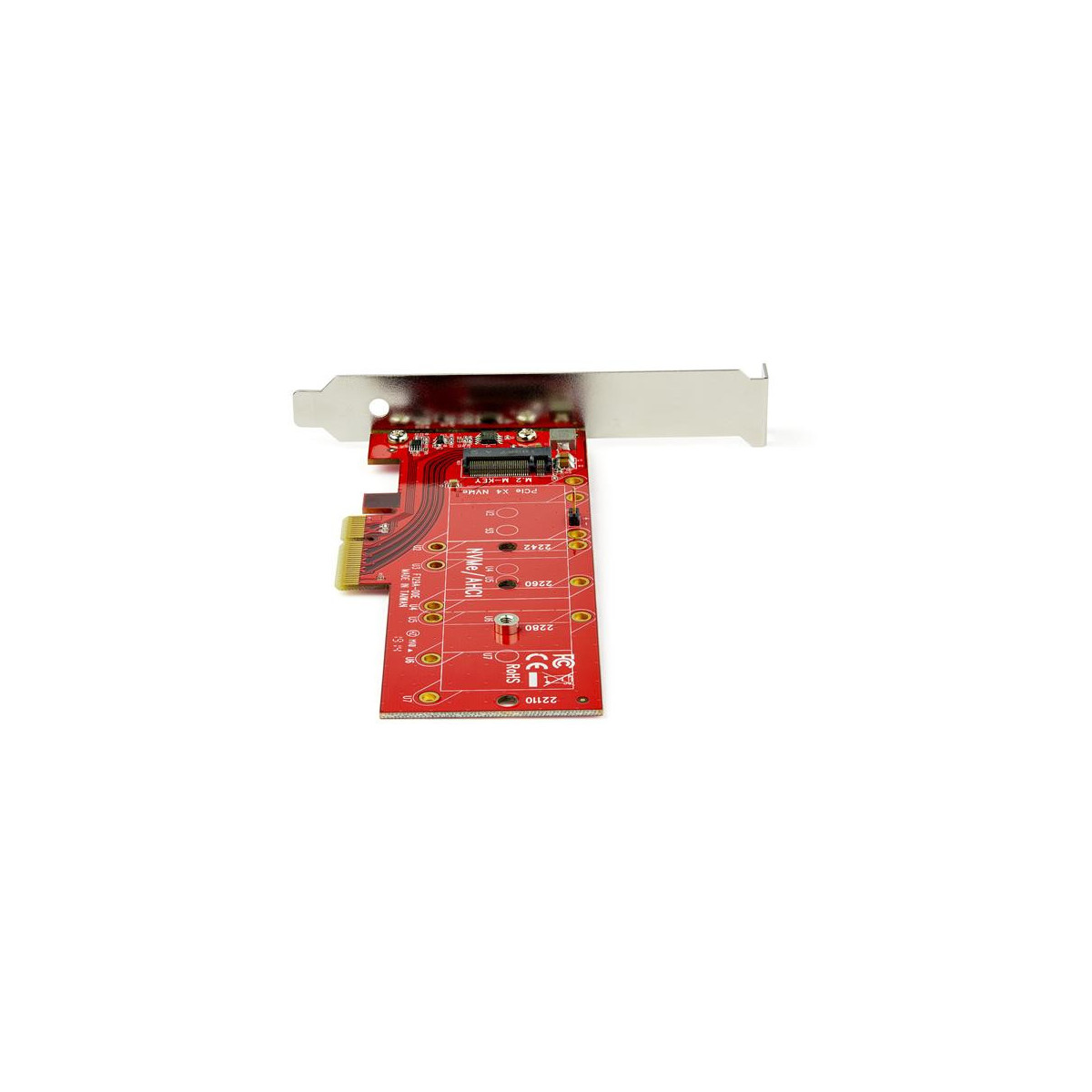 StarTech.com Adattatore SSD PCI Express x4 a M.2 PCIe. Interfaccia host: PCIe, Interfaccia di uscita: M.2, Fattore di forma della scheda di espansione: Piena altezza/Basso profilo. Colore del prodotto: Rosso, Certificazione: CE, FCC, REACH, TAA. Sistema operativo Windows supportato: Windows 10,Windows 10 Education,Windows 10 Education x64,Windows 10 Enterprise,Windows 10..., Compatibilità sistema operativo Mac: Mac OS X 10.10 Yosemite, Mac OS X 10.11 El Capitan, Mac OS X 10.12 Sierra, Mac OS X 10.13 High.... Larghezza: 121 mm, Profondità: 179 mm, Altezza: 184 mm. Larghezza imballo: 219 mm, Profondità imballo: 159 mm, Altezza imballo: 46 mm