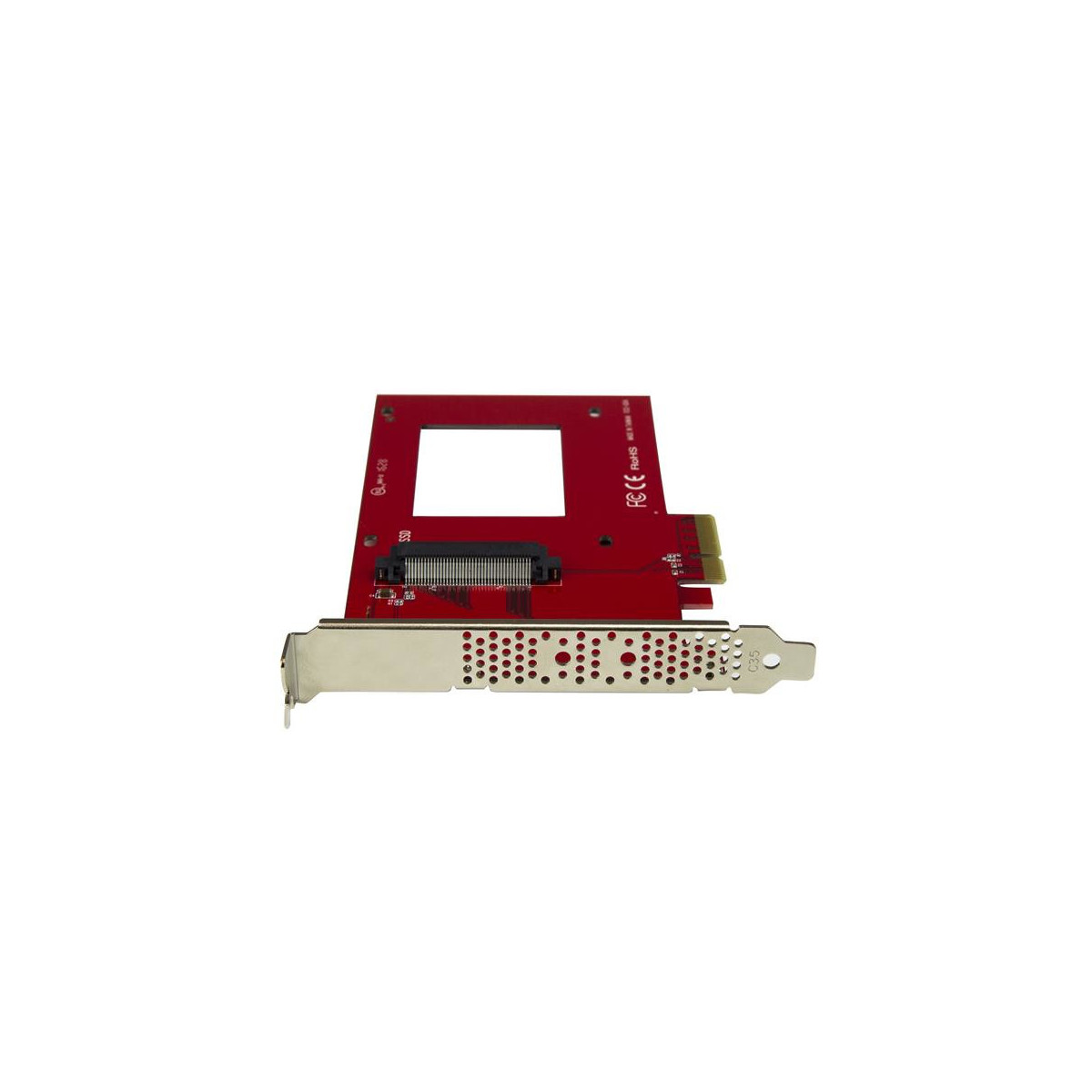 StarTech.com Scheda Adattatore PCI Express ad U.2 NVMe SSD - SFF-8639 da 2,5" PCIe 3.0 x4. Interfaccia host: PCIe, Interfaccia di uscita: U.2. Colore del prodotto: Rosso, Certificazione: CE, FCC. Larghezza: 122 mm, Profondità: 165 mm, Altezza: 22 mm. Larghezza imballo: 160 mm, Profondità imballo: 220 mm, Altezza imballo: 45 mm
