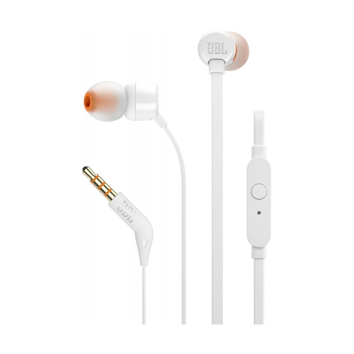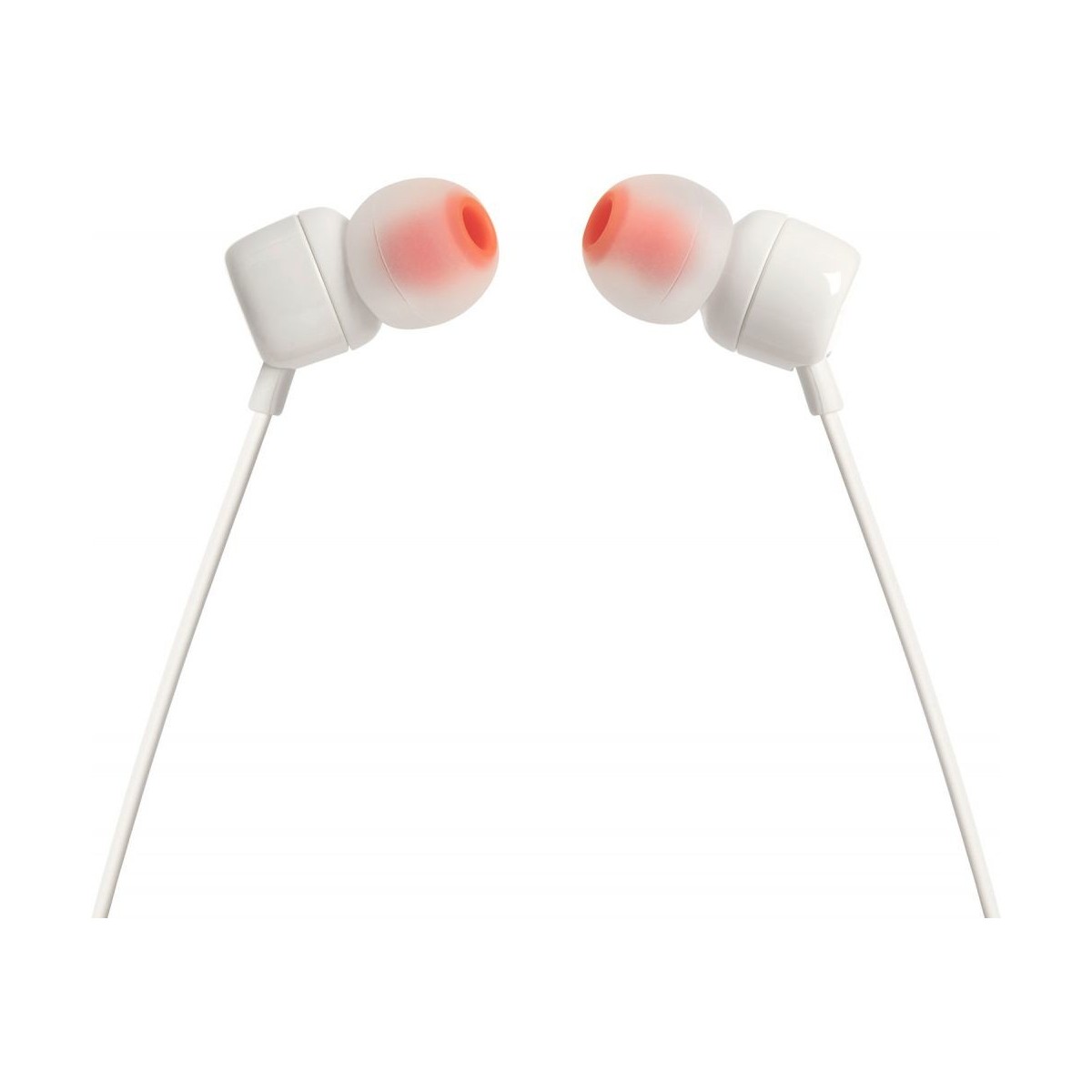 JBL T110. Tipo di prodotto: Cuffia, Stile d'uso: Auricolare, Colore del prodotto: Bianco. Tecnologia di connessione: Cablato. Disegno auricolare: Intraurale, Frequenza cuffia: 20 - 20000 Hz, Unità driver: 9 mm