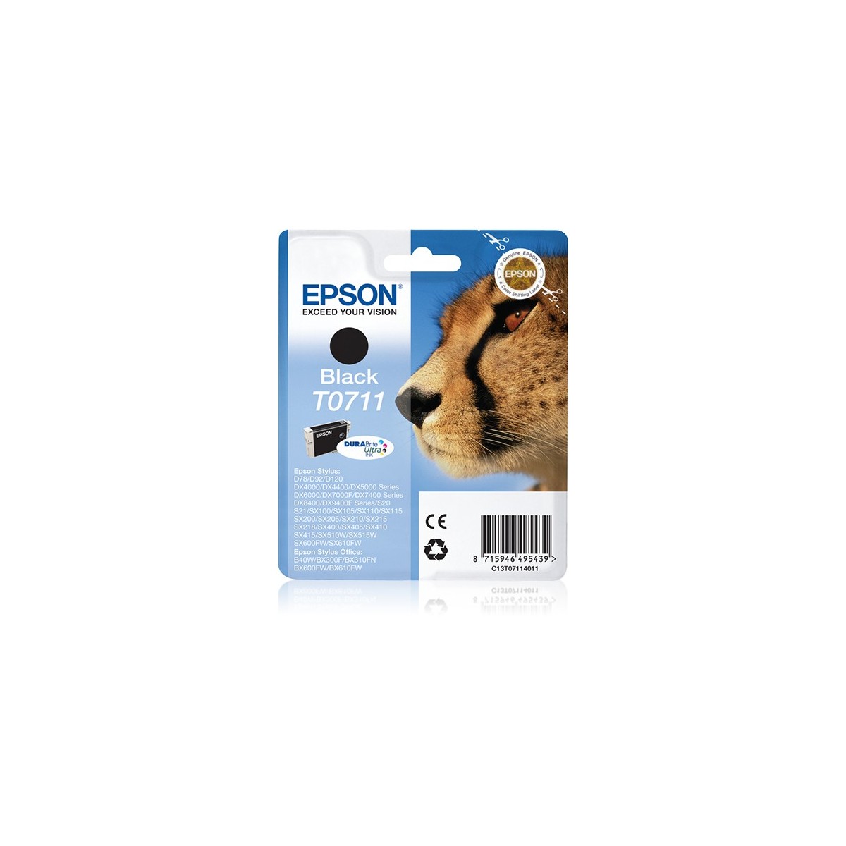 Epson Cheetah Cartuccia Nero. Tipo: Originale, Tipo di inchiostro: Inchiostro a base di pigmento, Colori di stampa: Nero. Larghezza imballo: 110 mm, Profondità imballo: 140 mm, Altezza imballo: 30 mm. Ampiezza del pallet: 80 cm, Lunghezza del pallet: 120 cm, Altezza del pallet: 161 cm