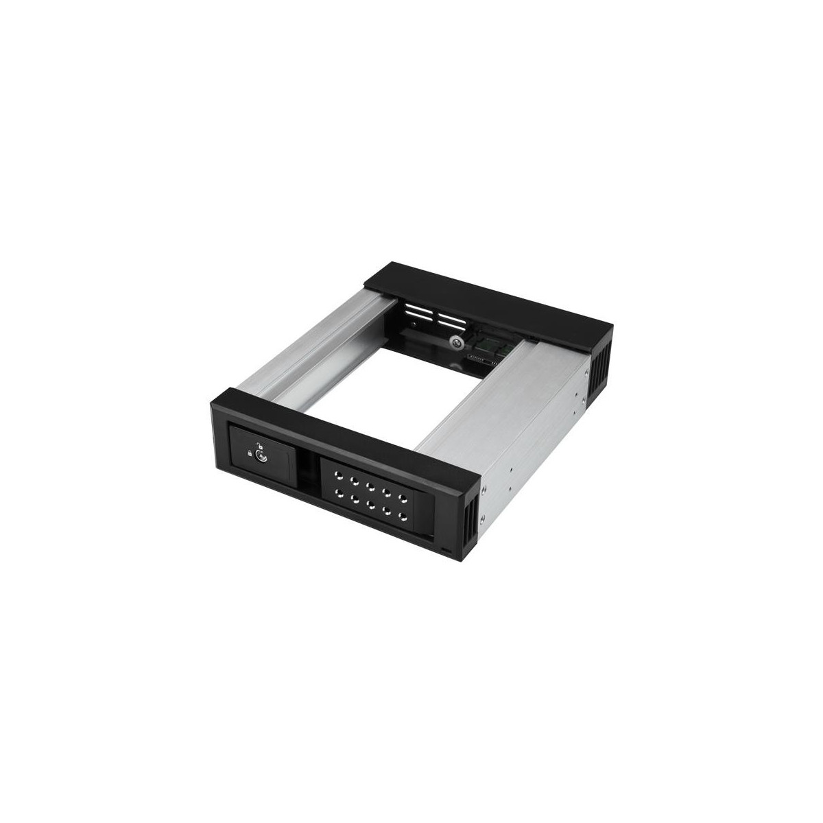 L'alloggiamento hot-swap fornisce una scheda backplane di protezione con una cassa in alluminio robusto con sistema di ventilazione per garantire un'adeguata circolazione dell'aria e una corretta dissipazione del calore. Per proteggere i dati, è possibile chiudere a chiave lo sportello dell'alloggiamento in modo da evitare l'accesso non autorizzato all'unità.