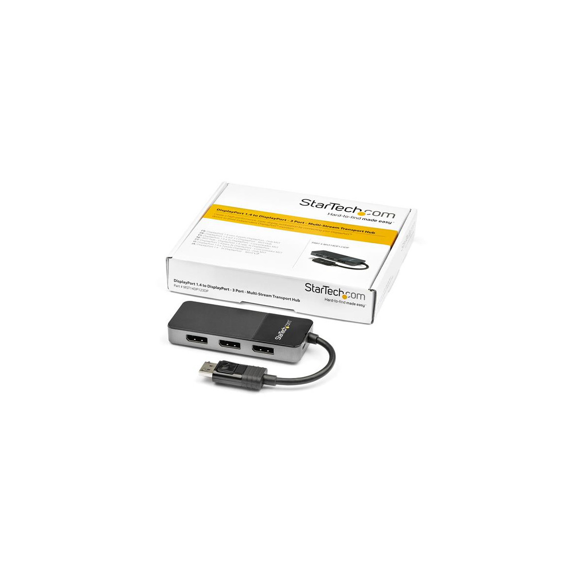 StarTech.com Adattatore multi monitor a 3 porte - DisplayPort 1.4 a 3x DisplayPort Video Splitter - Doppio o triplo 4K - Laptop/Desktop DP 1.4 MST Hub per monitor multipli - Windows & Linux. Tipo porta video: DisplayPort, Uscita video: 3x DisplayPort. Risoluzione massima: 7680 x 4320 Pixel, Colore del prodotto: Nero, Grigio, Materiale della scocca: Plastica. Larghezza: 105 mm, Profondità: 43 mm, Altezza: 14 mm. Larghezza imballo: 142 mm, Profondità imballo: 170 mm, Altezza imballo: 30 mm. Cavi inclusi: Micro-USB