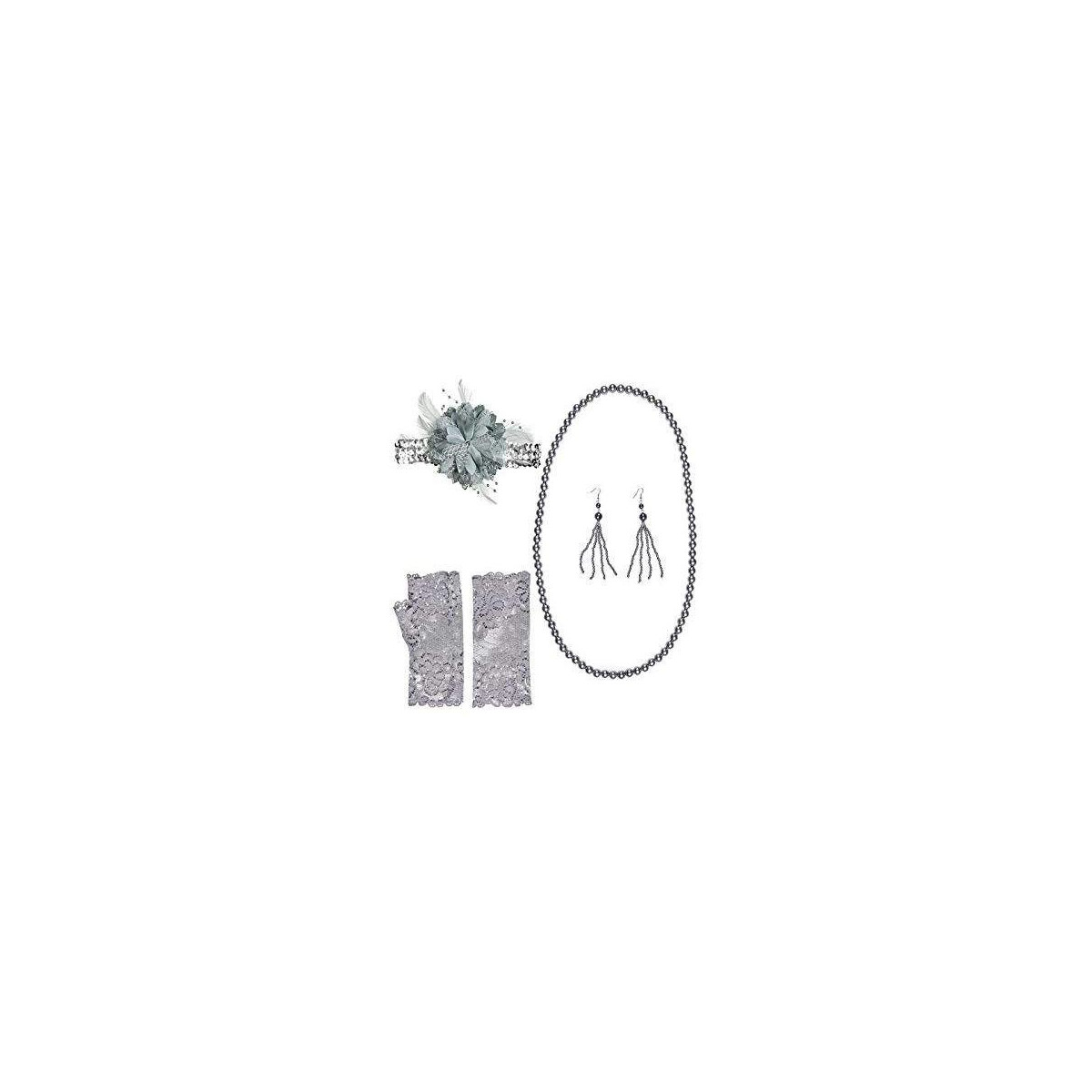 WIDMANN Charleston Anni 20 Ruggenti (Fascia Per Testa In Paillettes Con Fiore, Paio Di Orecchini Perline, Collana Perline, Paio Di Guanti In Pizzo Senza Dita)
