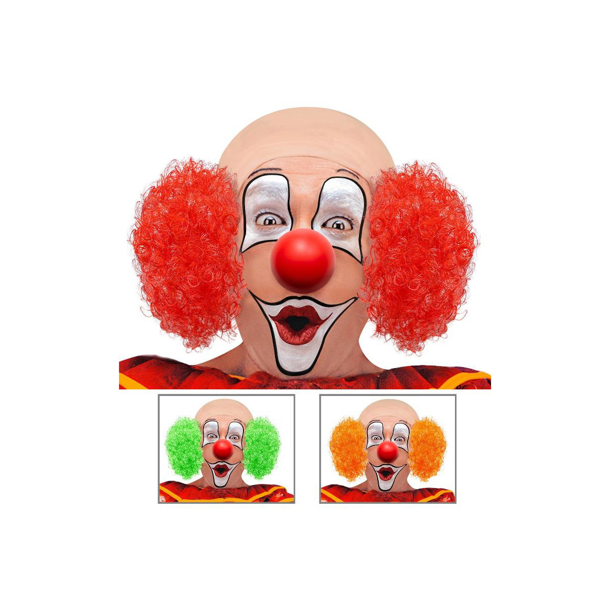 WIDMANN Calotta Clown Lusso Con Capelli Ricci Ass. In 3 Colori: 4 Rosse, 1 Arancione, 1 Verde