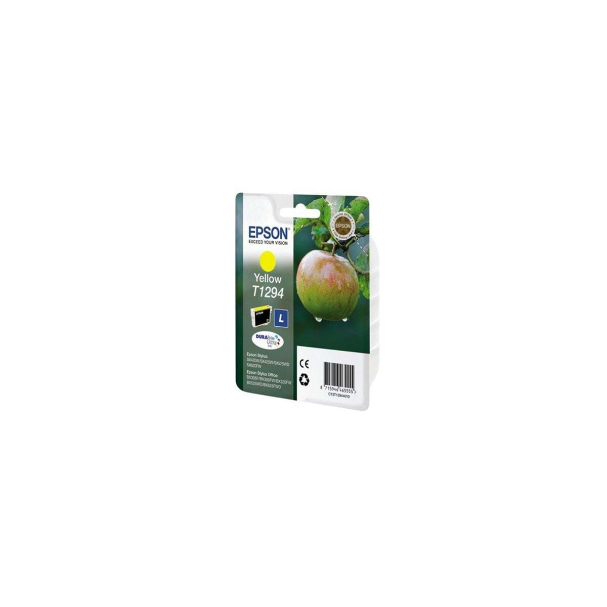 Epson Apple Cartuccia Giallo. Tipo: Originale, Tipo di inchiostro: Inchiostro a base di pigmento, Colori di stampa: Giallo. Larghezza imballo: 113 mm, Profondità imballo: 142 mm, Altezza imballo: 25 mm. Ampiezza del pallet: 80 cm, Lunghezza del pallet: 120 cm, Altezza del pallet: 48 cm