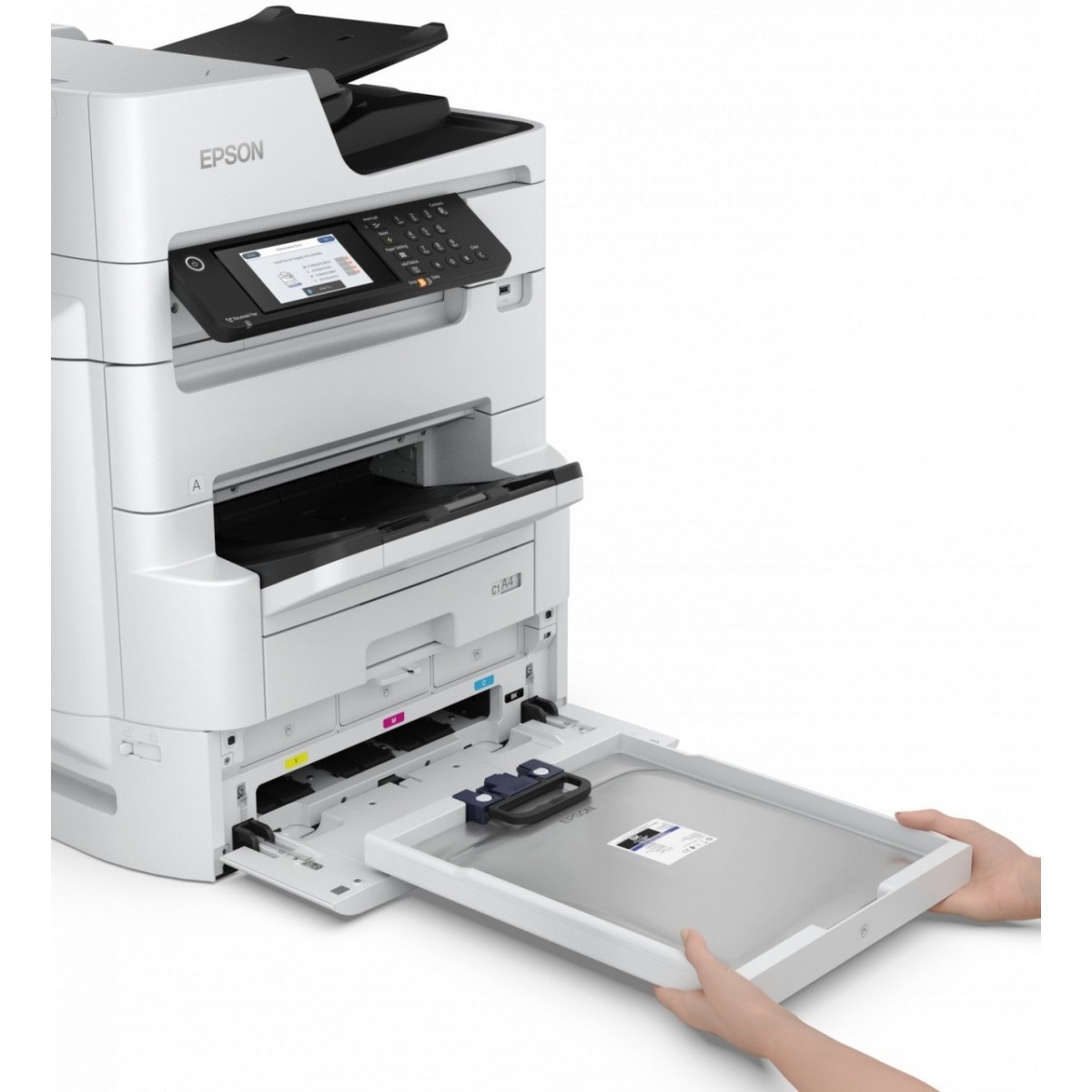 Epson WorkForce Pro RIPS WF-C879R. Tecnologia di stampa: Ad inchiostro, Stampa: Stampa a colori, Risoluzione massima: 4800 x 1200 DPI, Velocità di stampa (colore, qualità normale, A4/US Letter): 35 ppm. Copia: Copia a colori, Risoluzione di copia massima: 600 x 1200 DPI. Scansione: Scansione a colori, Risoluzione di scansione ottica: 600 x 600 DPI. Fax: Mono fax. Massimo formato carta serie ISO A: A3. Wi-Fi. Stampa diretta. Colore del prodotto: Bianco
