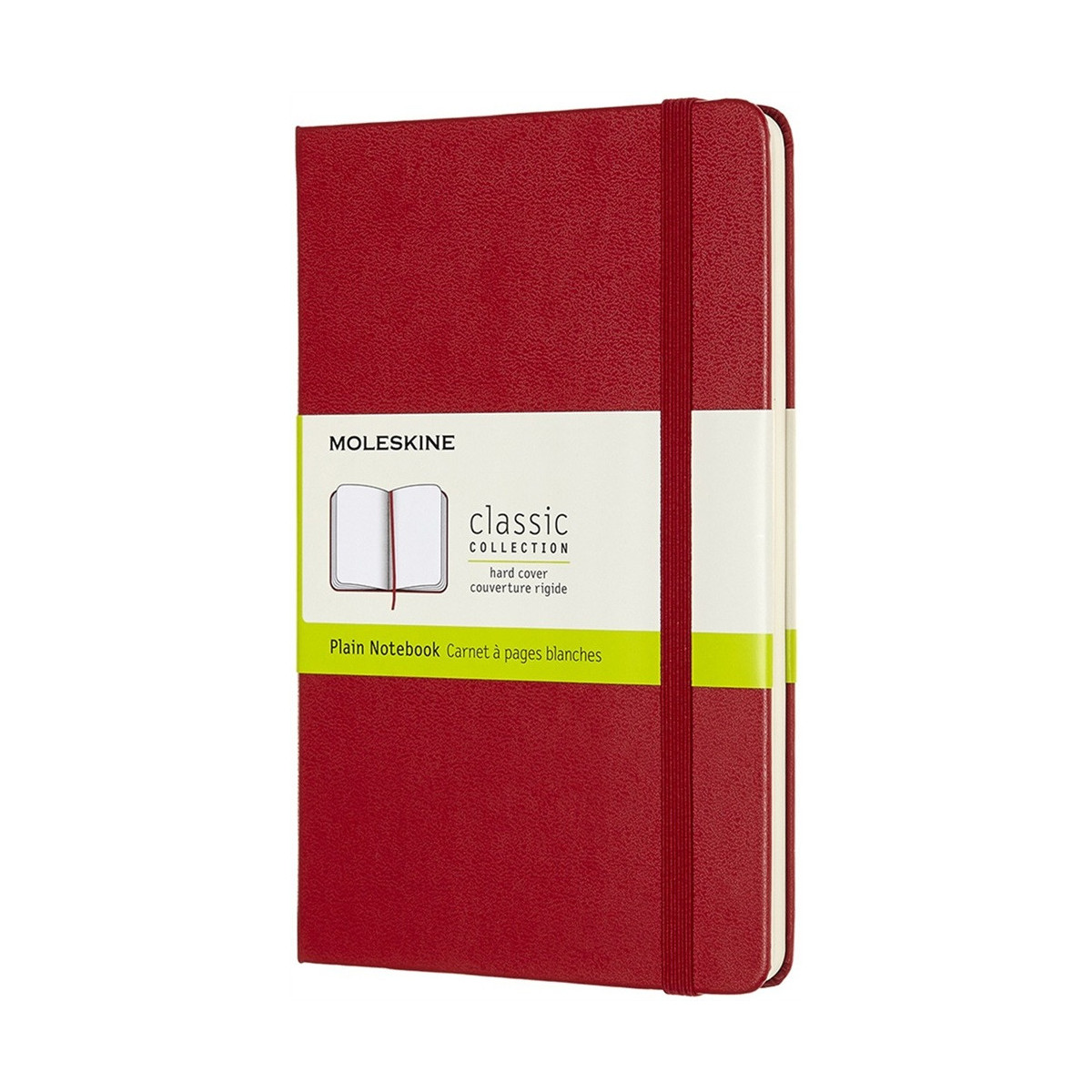 "Abbastanza piccolo da poterlo inserire in qualsiasi borsa, abbastanza grande da contenere le idee più grandiose. Il nuovo taccuino Classic taglia medium di Moleskine include gli angoli arrotondati per proteggerlo da ogni ostacolo sul percorso e una chiusura elastica per tenere al sicuro i tuoi pensieri manoscritti e i tuoi contenuti creativi. Un segnalibro coordinato aiuta a rintracciare i tuoi progetti, mentre la tasca interna espandibile è perfetta per riporre gli appunti sparsi raccolti durante la giornata. La caratteristica nota \In case of loss\"" sul risguardo frontale ti invita ad aggiungere il tuo nome, i dettagli di contatto e una ricompensa, nell'eventualità che tu smarrisca i tuoi indispensabili appunti on the road. Disponibile nelle tonalità nero classico, rosso scarlatto e blu zaffiro e con una scelta tra pagine bianche, a righe, a griglia puntinata o a quadretti, questo compagno taglia medium per gli appunti è ideato per accompagnarti ovunque, pronto a catturare l'ispirazione ogni volta che sopraggiunge. · Taccuino Classic con copertina rigida · Angoli arrotondati · Chiusura elastica · Carta color avorio Moleskine · Segnalibro dello stesso colore · Carta: 70 g/m2 acid-free, avorio, a righe · Etichetta \""In case of loss\"" stampata nel risguardo · Tasca interna espandibile sul retro · Sul B-SIDE della fascetta riutilizzabile sono stampati strumenti aggiuntivi · Apertura totale a 180 gradi · All'interno, tutta la storia Moleskine"""