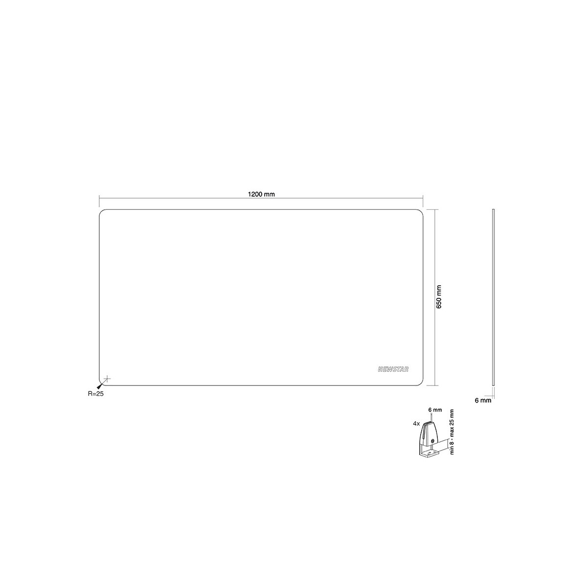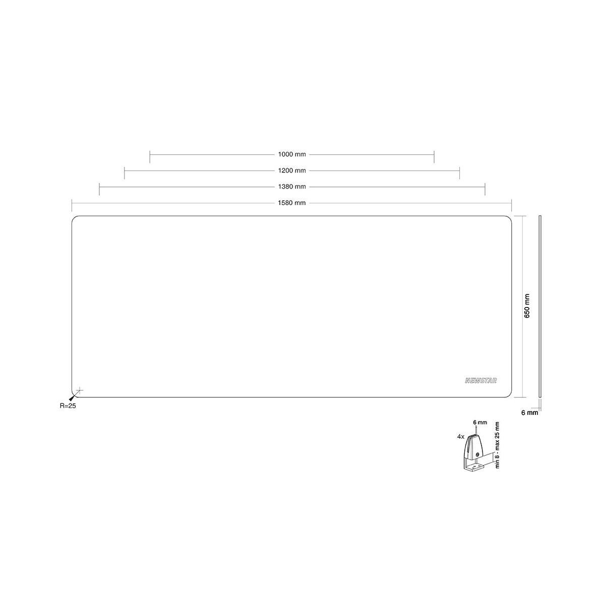 Newstar Schermo trasparente. Colore del prodotto: Trasparente, Quantità per pacco: 1 pezzo(i), Orientamento: Landscape. Spessore: 6 mm, Larghezza: 1200 mm, Altezza: 65 mm. Codice del Sistema Armonizzato (SA): HS83025000, Paese di origine: Paesi Bassi, Quantità per cartone principale: 1 pezzo(i)