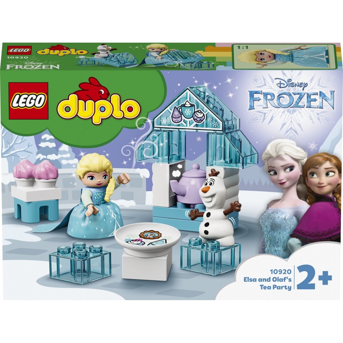 LEGO DUPLO Il tea party di Elsa e Olaf - 10920. Tipo di prodotto: Set da costruzione, Colore del prodotto: Multicolore, Genere consigliato: Ragazzo/Ragazza. Larghezza imballo: 191 mm, Profondità imballo: 262 mm, Altezza imballo: 61 mm. Numero di minifigurine giocattolo: 2 pezzo(i). Quantità per livello: 72 pezzo(i), Larghezza scatola principale: 19,9 cm, Lunghezza del cartone principale: 39,8 cm