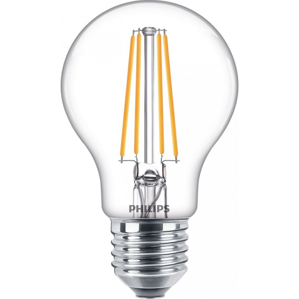 Philips Lampadina. Potenza lampadina: 7 W, Lampadina di potenza equivalente: 60 W, Attacco lampada: E27, Flusso luminoso: 806 lm, Durata della lampadina: 15000 h, Colore della luce: Bianco caldo, Temperatura colore: 2700 K, Color Rendering Index (CRI): 80, Fattore di potenza: 0,51