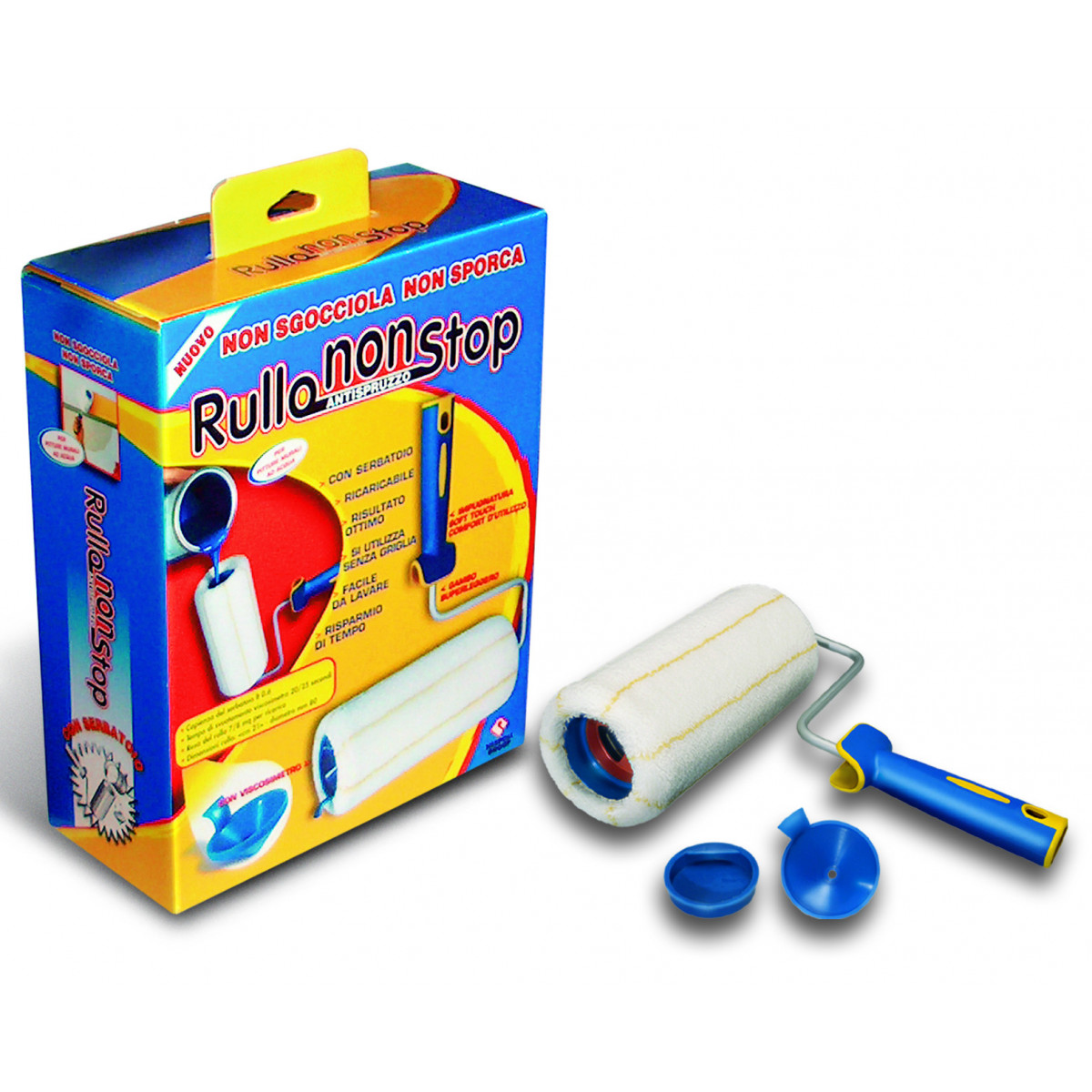 Nespoli Group Rullo No Stop con serbatoio ricaricabile. Tipo di prodotto: Rullo per verniciare, Colore del prodotto: Blu, Bianco, Giallo, Utilizzo: Parete. Quantità per pacco: 1 pezzo(i)