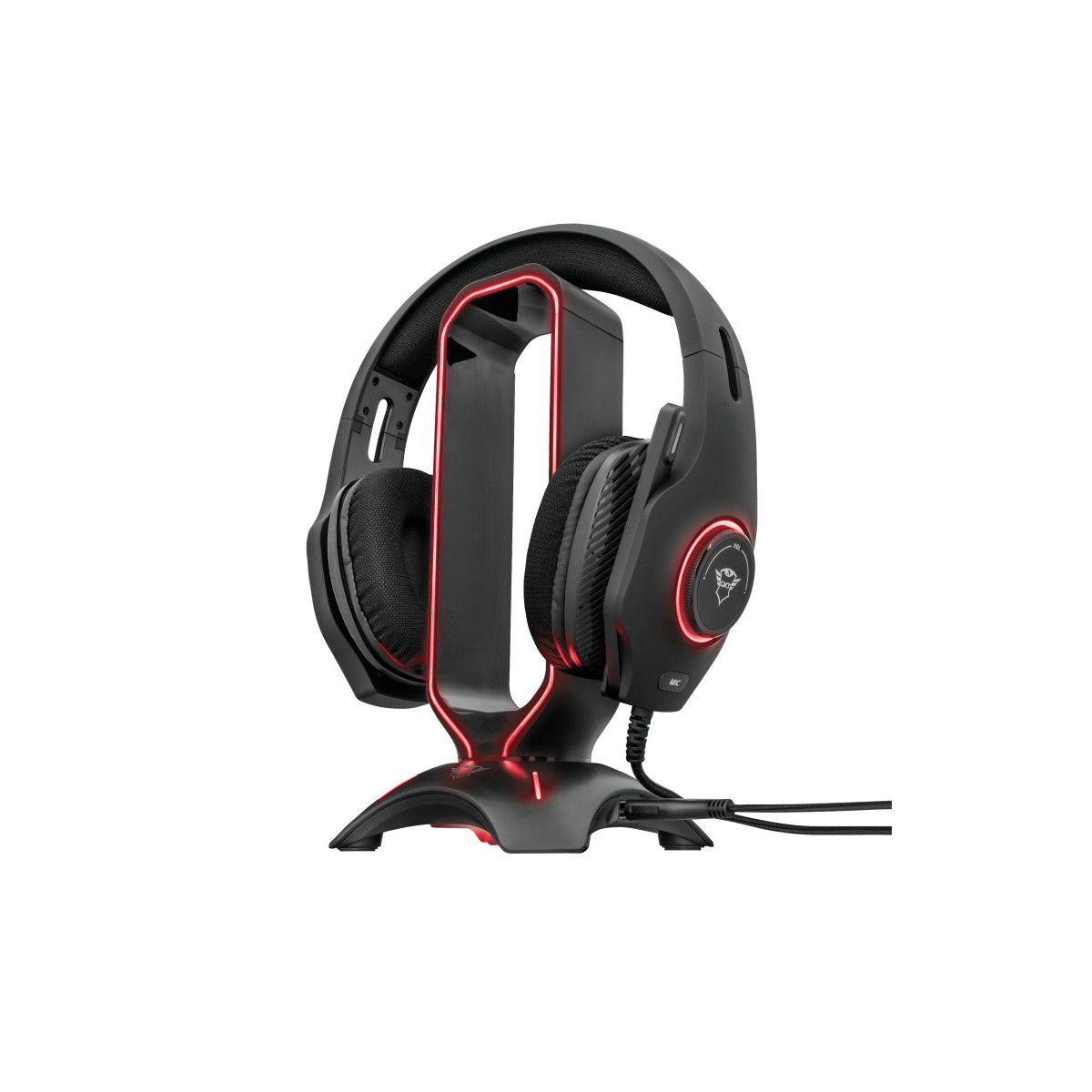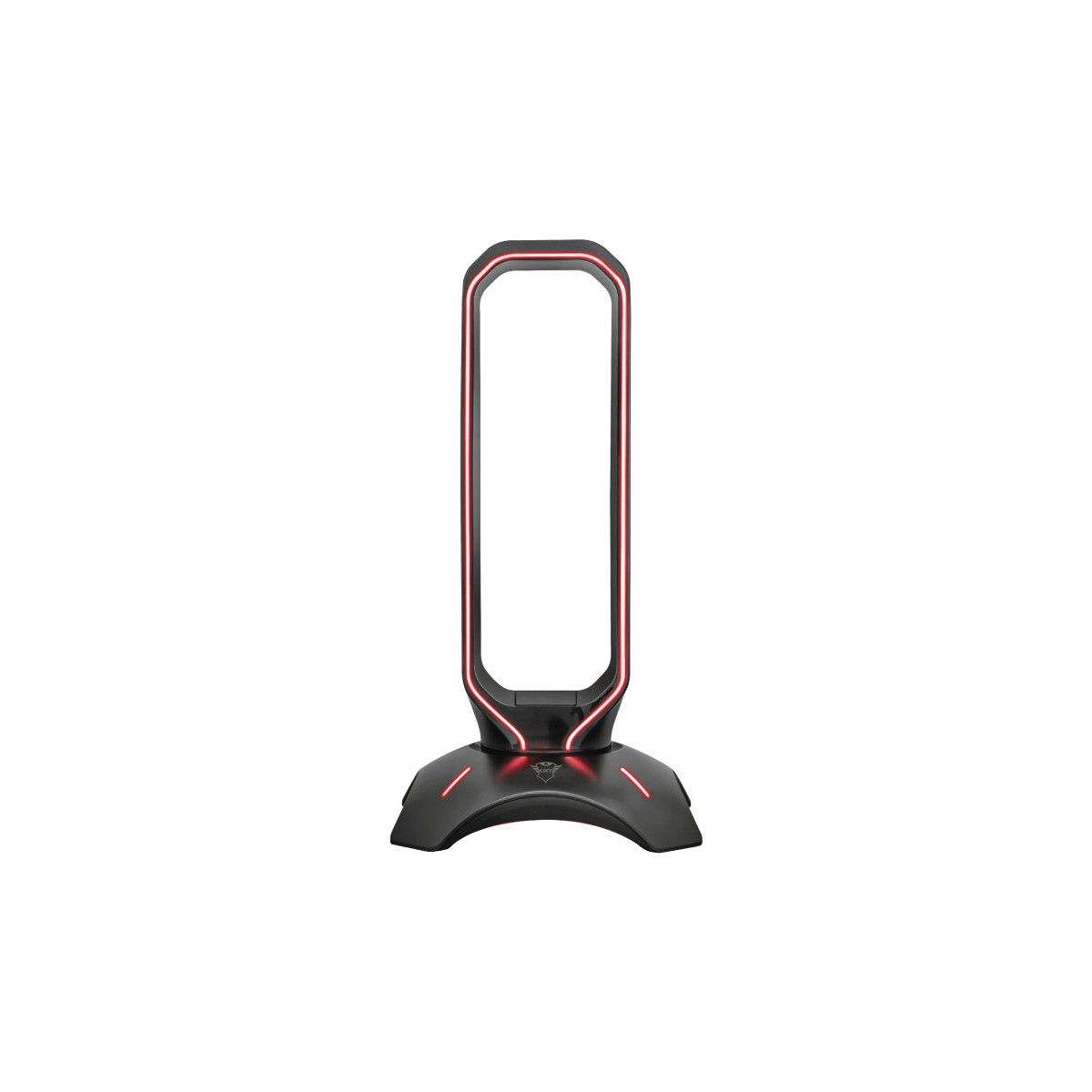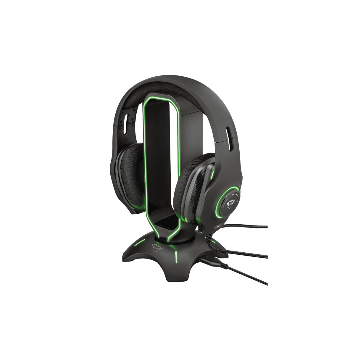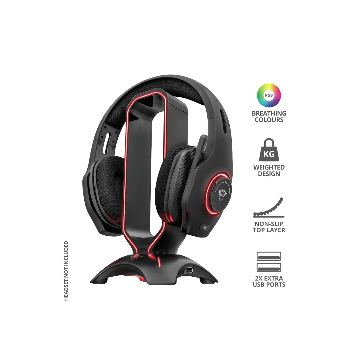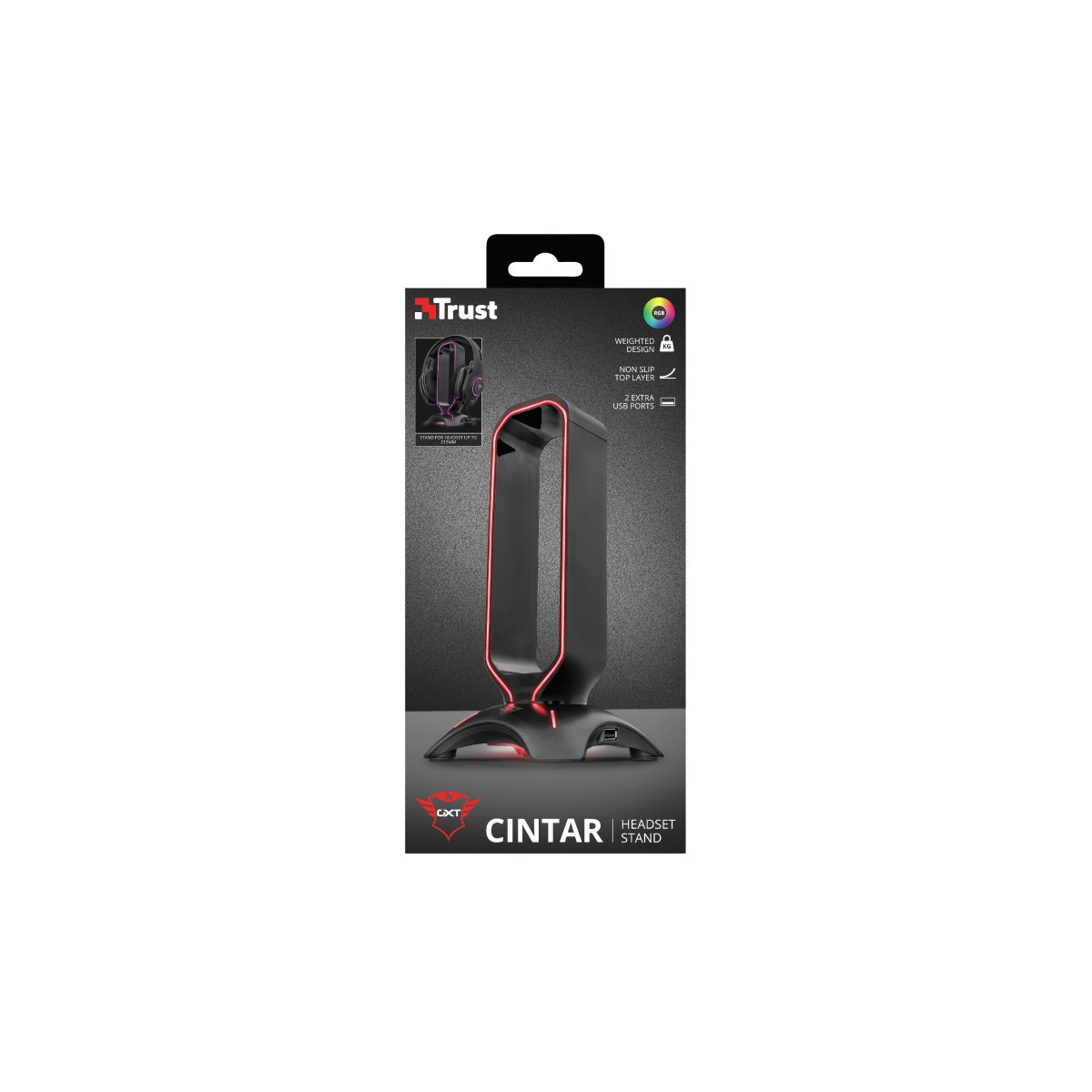 Tieni in ordine la scrivania con il supporto per cuffie Trust GXT 265 Cintar RGB. Quest'elegante accessorio non si limita a sostenere le tue cuffie: ha due porte USB facilmente raggiungibili e aggiunge alla tua postazione di gaming delle straordinarie luci RGB.
