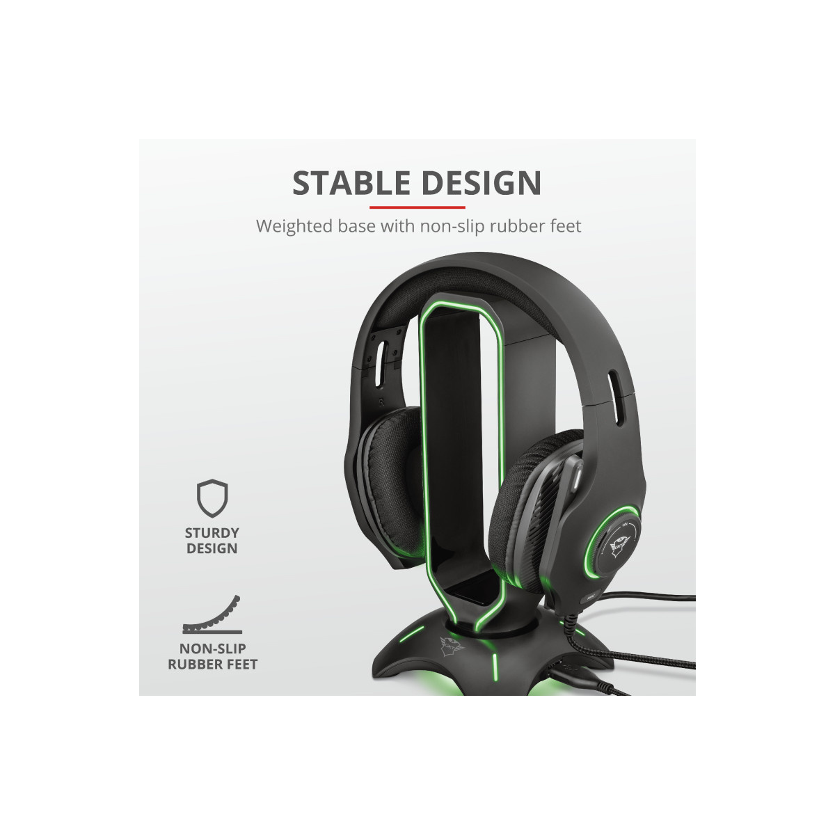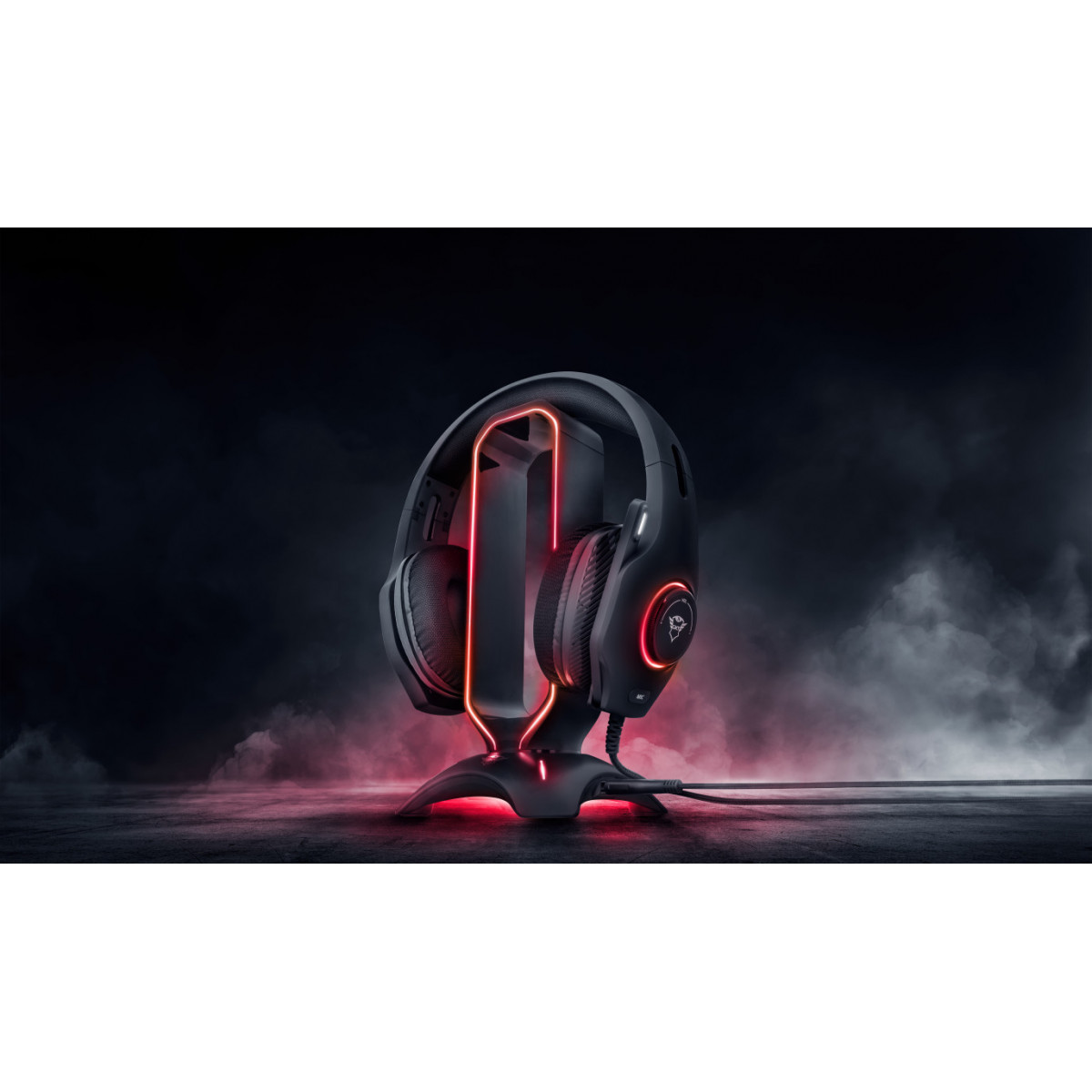 Oltre a tenere in ordine la scrivania, il supporto per le cuffie colpisce per la straordinaria illuminazione RGB. Con i suoi colori sgargianti, il supporto Trust GXT 265 Cintar RGB non è soltanto un utile complemento per la tua postazione di gaming, ma è anche molto elegante.