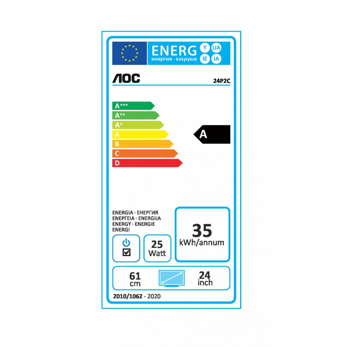 AOC Pro-line 24P2C. Dimensioni schermo: 60,5 cm (23.8"), Risoluzione del display: 1920 x 1080 Pixel, Tipologia HD: Full HD, Tecnologia display: LED, Superficie display: Opaco, Tempo di risposta: 4 ms, Rapporto d'aspetto nativo: 16:9, Angolo di visualizzazione (orizzontale): 178°, Angolo di visualizzazione (verticale): 178°. Altoparlanti incorporati. Hub USB integrato, Versione dell'hub USB: 3.2 Gen 1 (3.1 Gen 1). Montaggio standard VESA, Regolazione altezza. Colore del prodotto: Nero