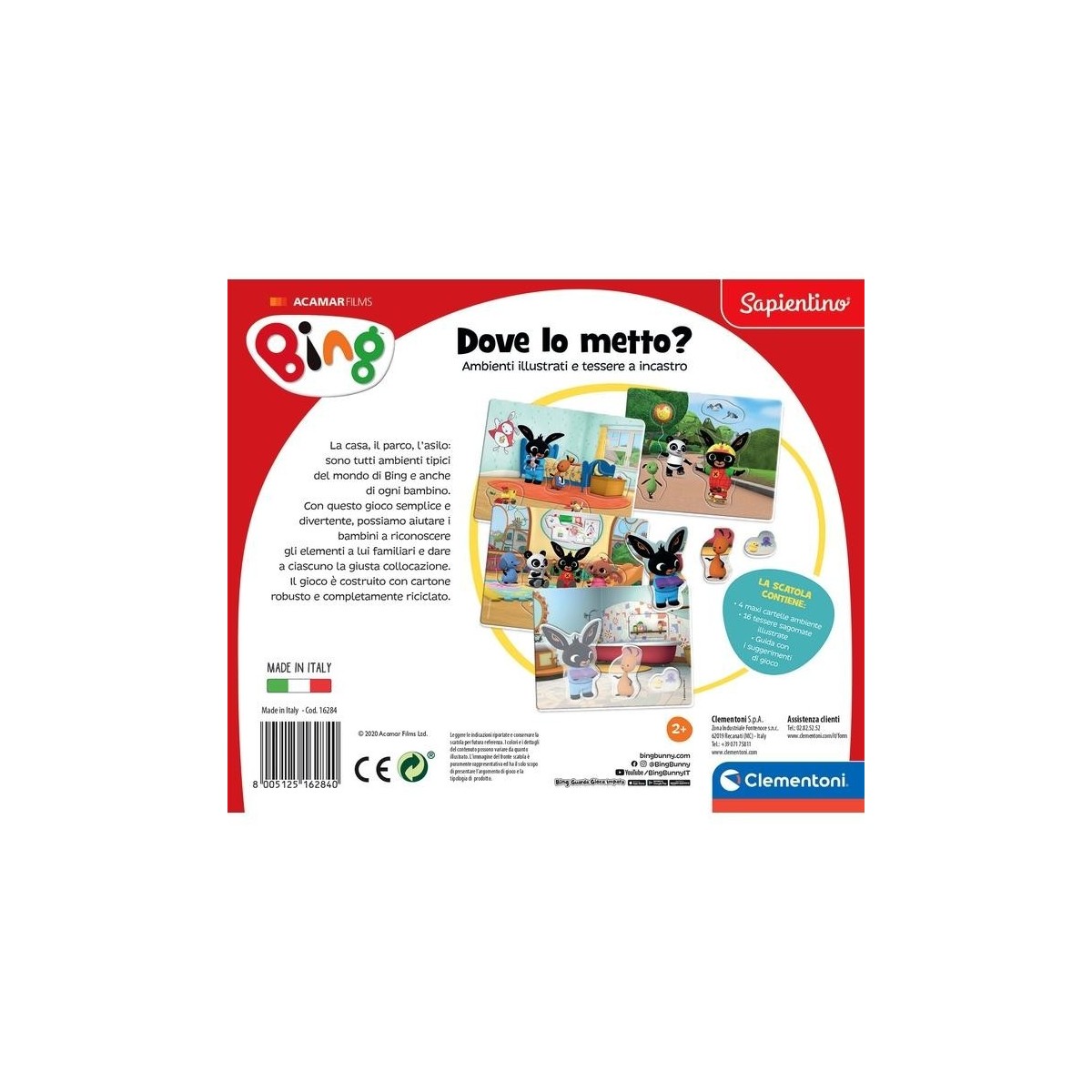 Clementoni BING - DOVE LO METTO?. Genere: Gioco didattico, Pubblico di destinazione: Bambini, Genere consigliato: Ragazzo/Ragazza. Larghezza imballo: 252 mm, Profondità imballo: 210 mm, Altezza imballo: 65 mm